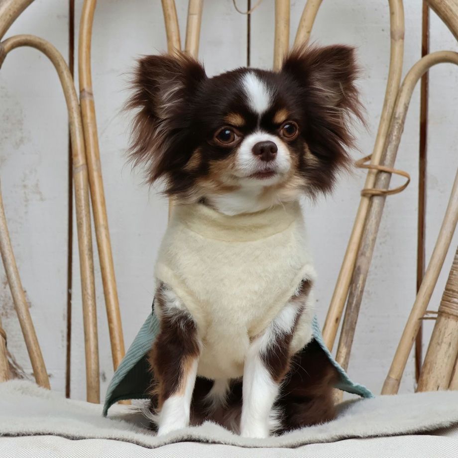 ふわふわで暖かく、柔らかく肌触りの良い生地を身頃部分に贅沢に使用し愛犬を優しく包み込みます。