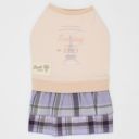 裾から見えるチェックのティアードスカートは、Tシャツと重ね着風のシルエットになるようにデザインしました。