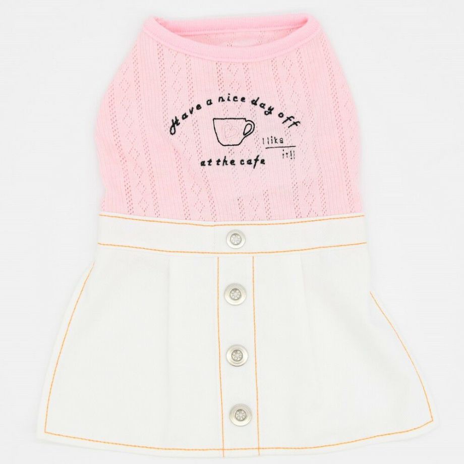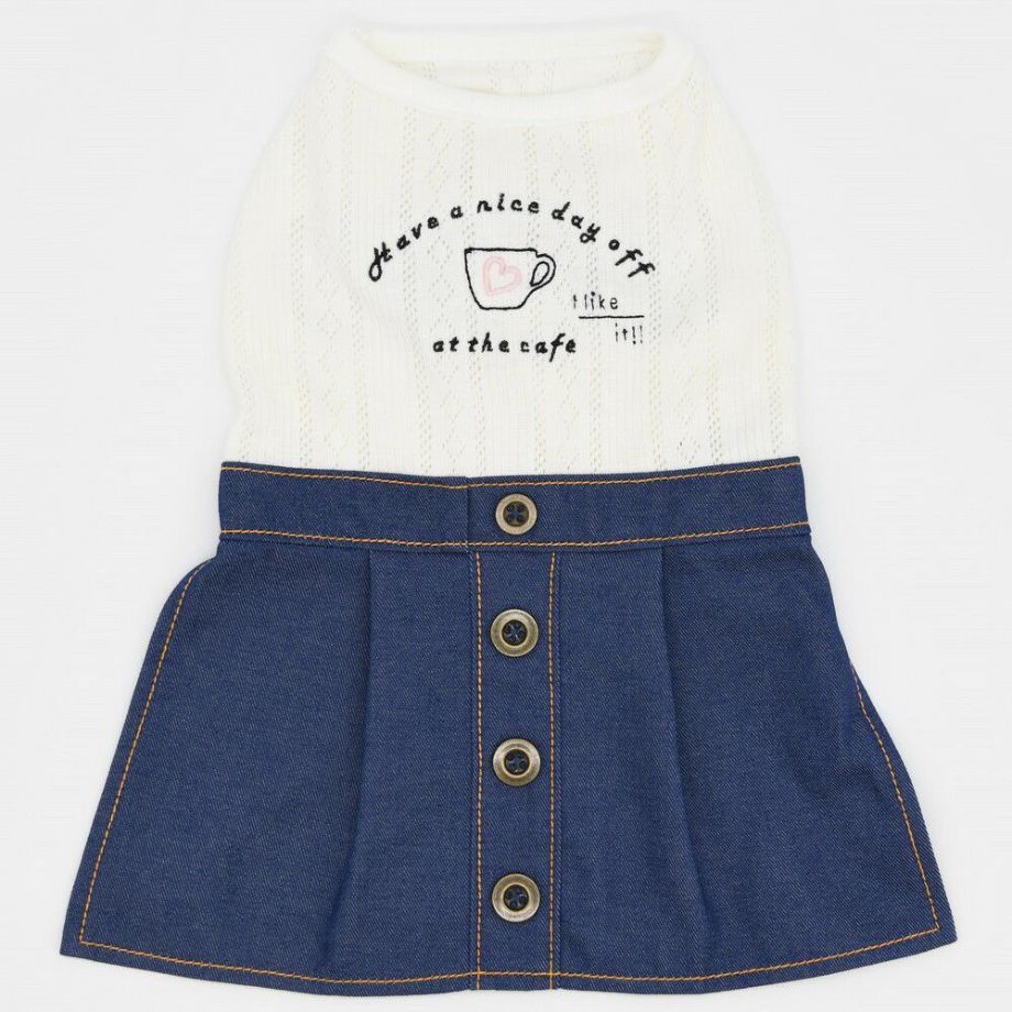 カフェ刺繍がポイントのデニムワンピース