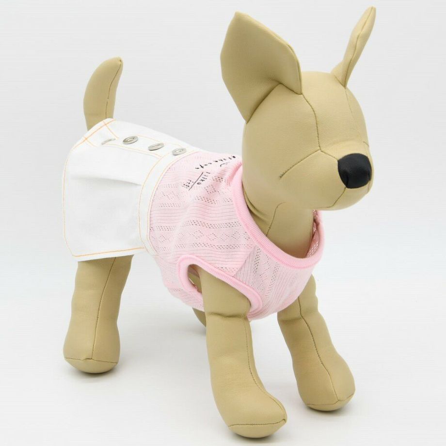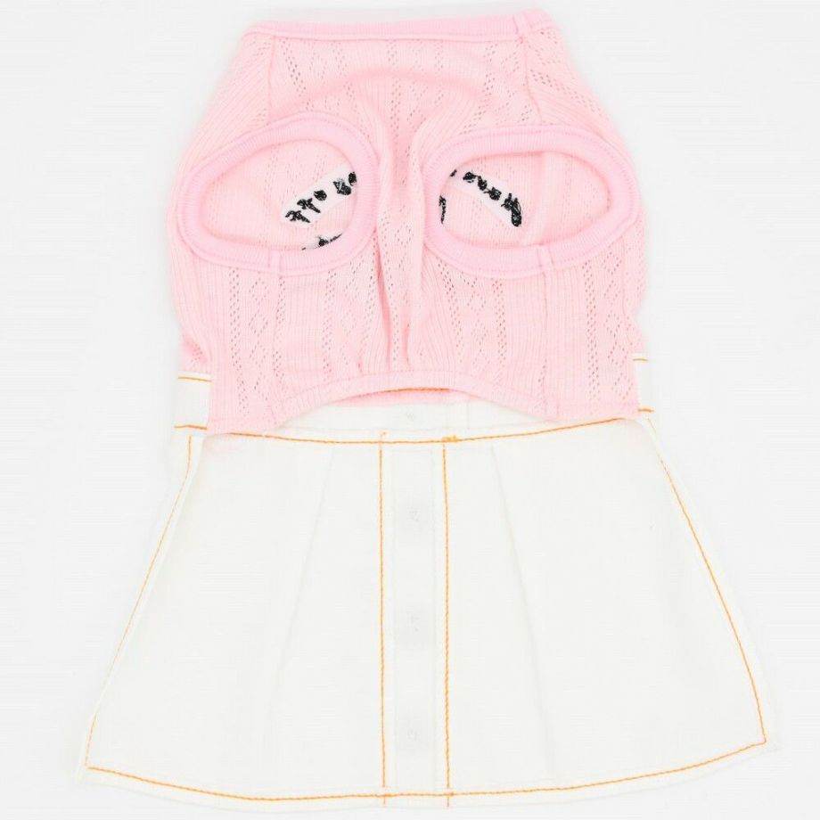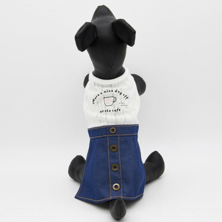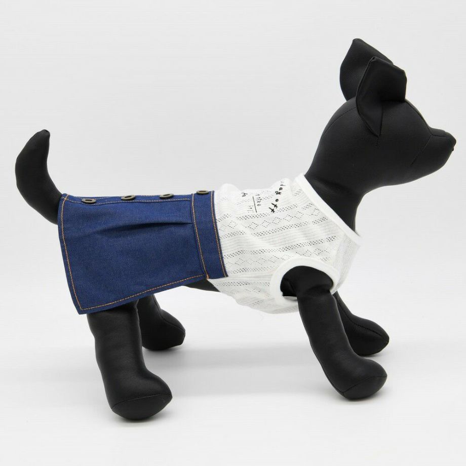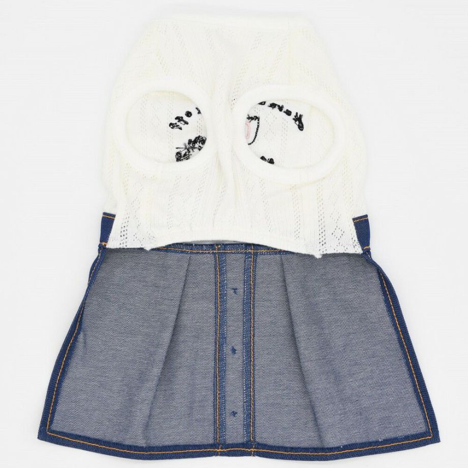 スカートのデニム部分にはオレンジの配色の糸を使用し、まるで人間の服のようなデザインに仕上げました。