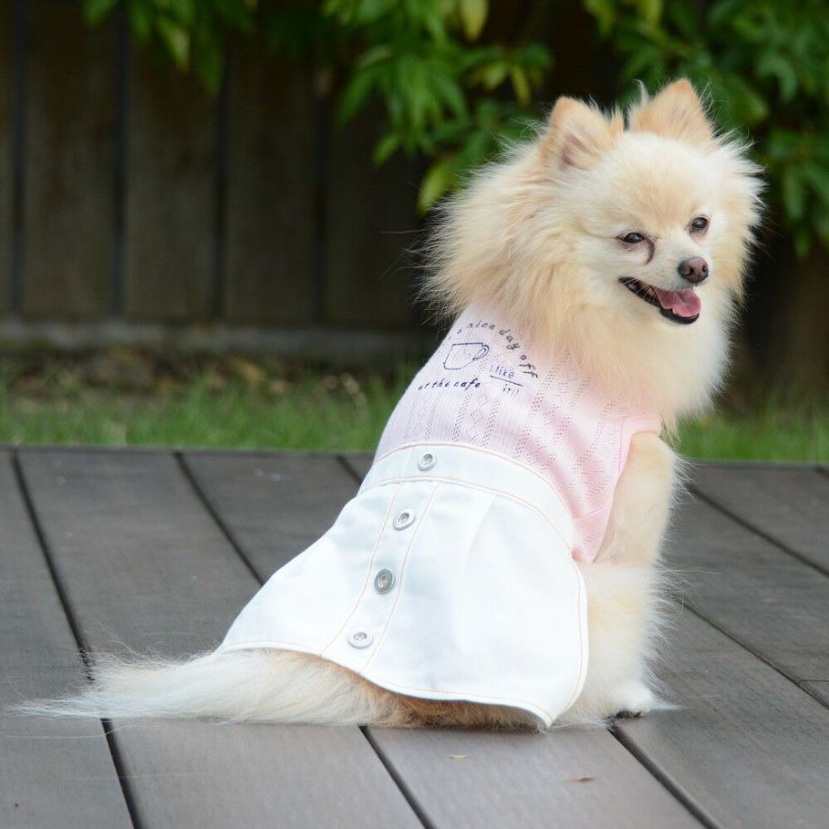 スカート部分は日本製の高級感を持たせるしっかりとした生地を使用し、カジュアルなデザインですが、落ち着いた雰囲気が感じられる1枚。