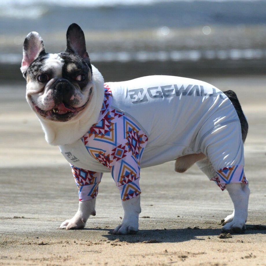 リサイクルファブリックを使用したサステナブルコンセプトのウェア。 LGE534 ネイティブプリント マイナス フリージング ロンパース【BL】ブルドッグ専用サイズ ラッシュガード