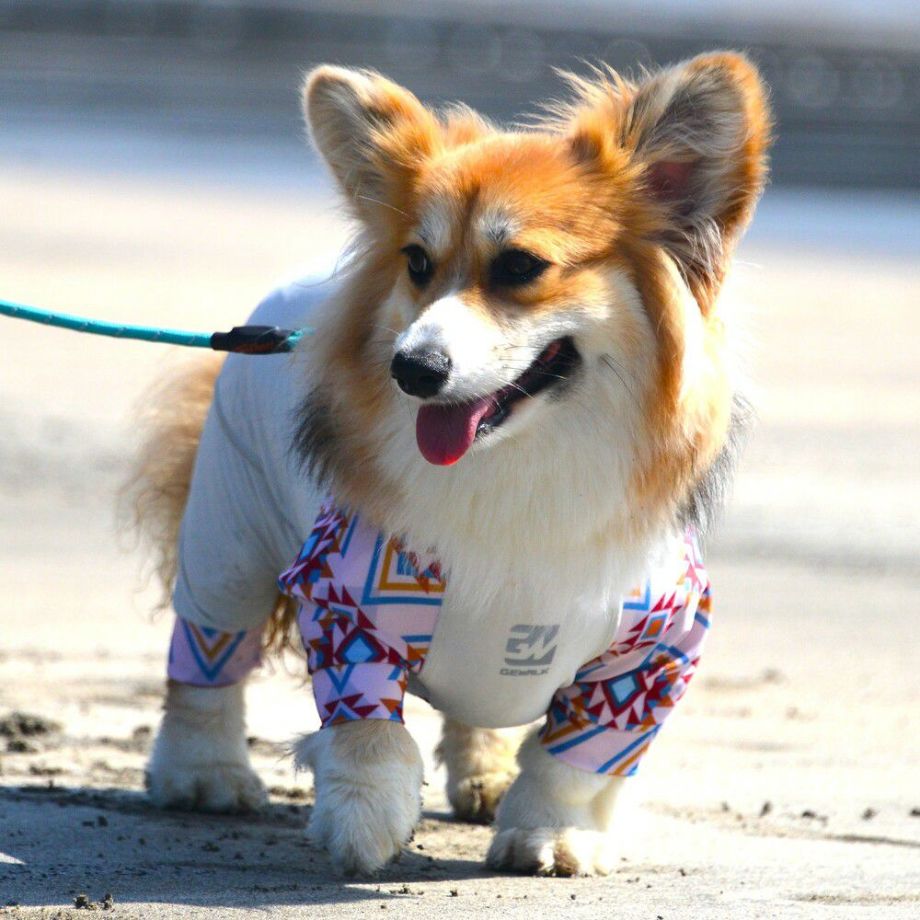 リサイクルファブリックを使用したサステナブルコンセプトのウェア。 LGE534 ネイティブプリント マイナス フリージング ロンパース【CGL】コーギー専用サイズ ラッシュガード