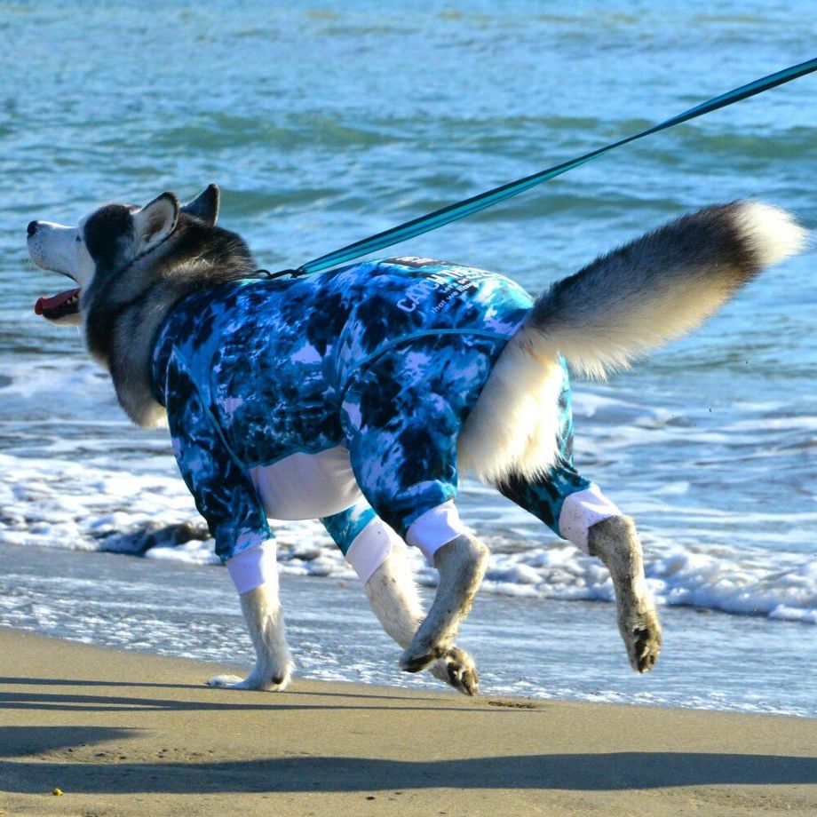 雨の日や雪中でのお散歩はもちろん、海や川、山やドッグランなど様々なアウトドアシーンで大活躍のアクティブロンパースです。