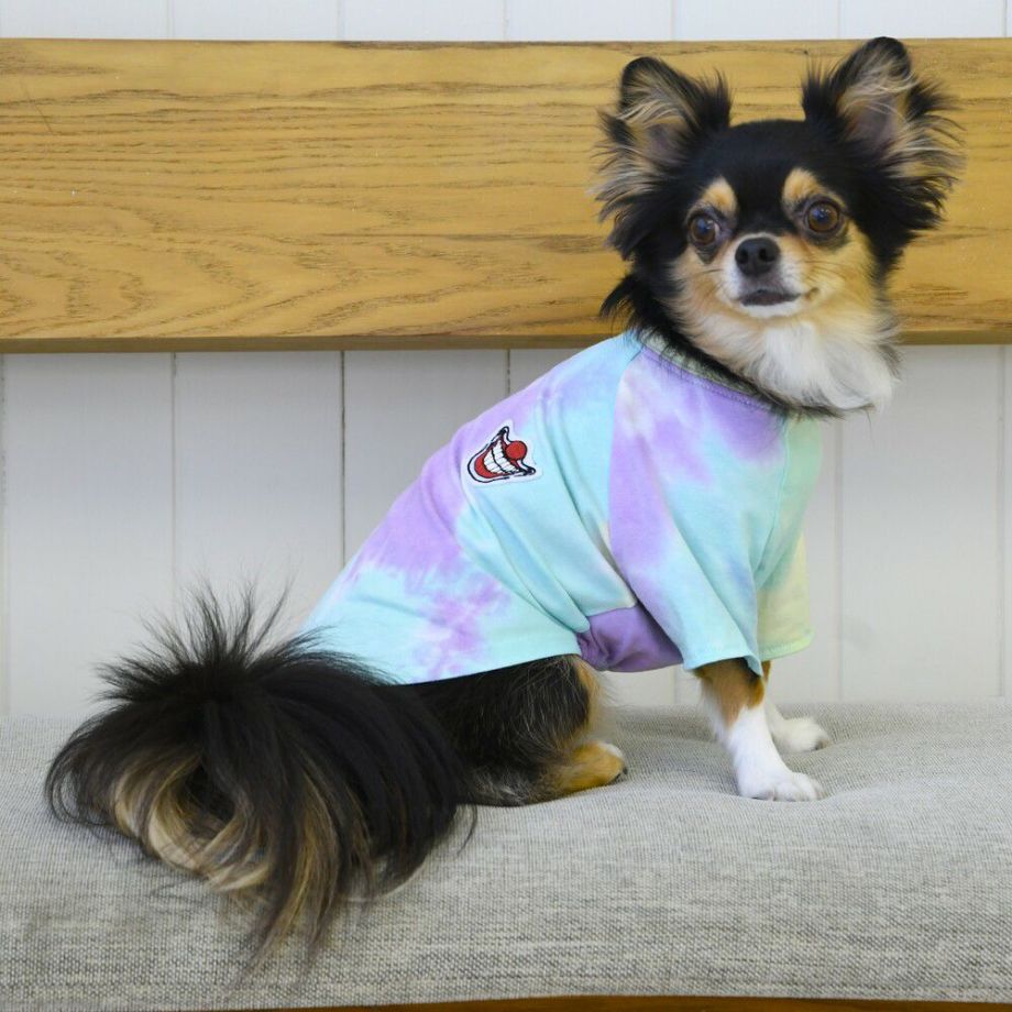 派手ですがどんな犬種にもよく似合うカラーで染めました。