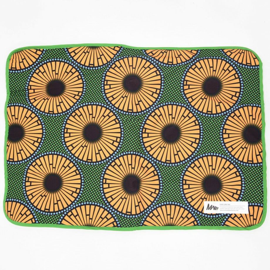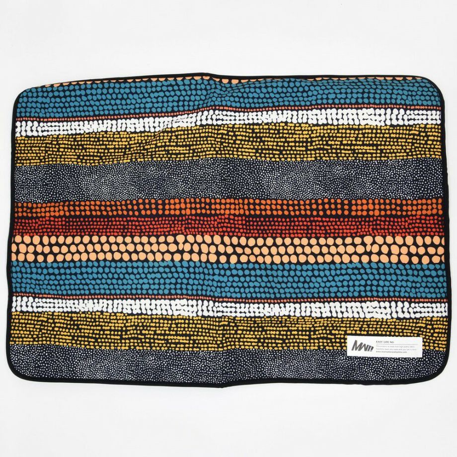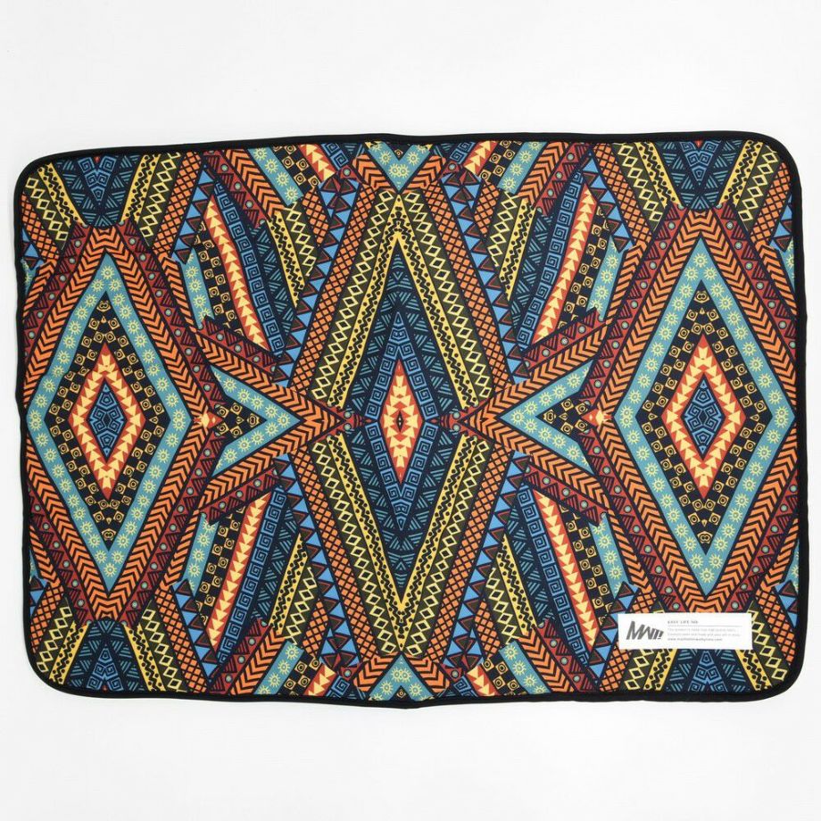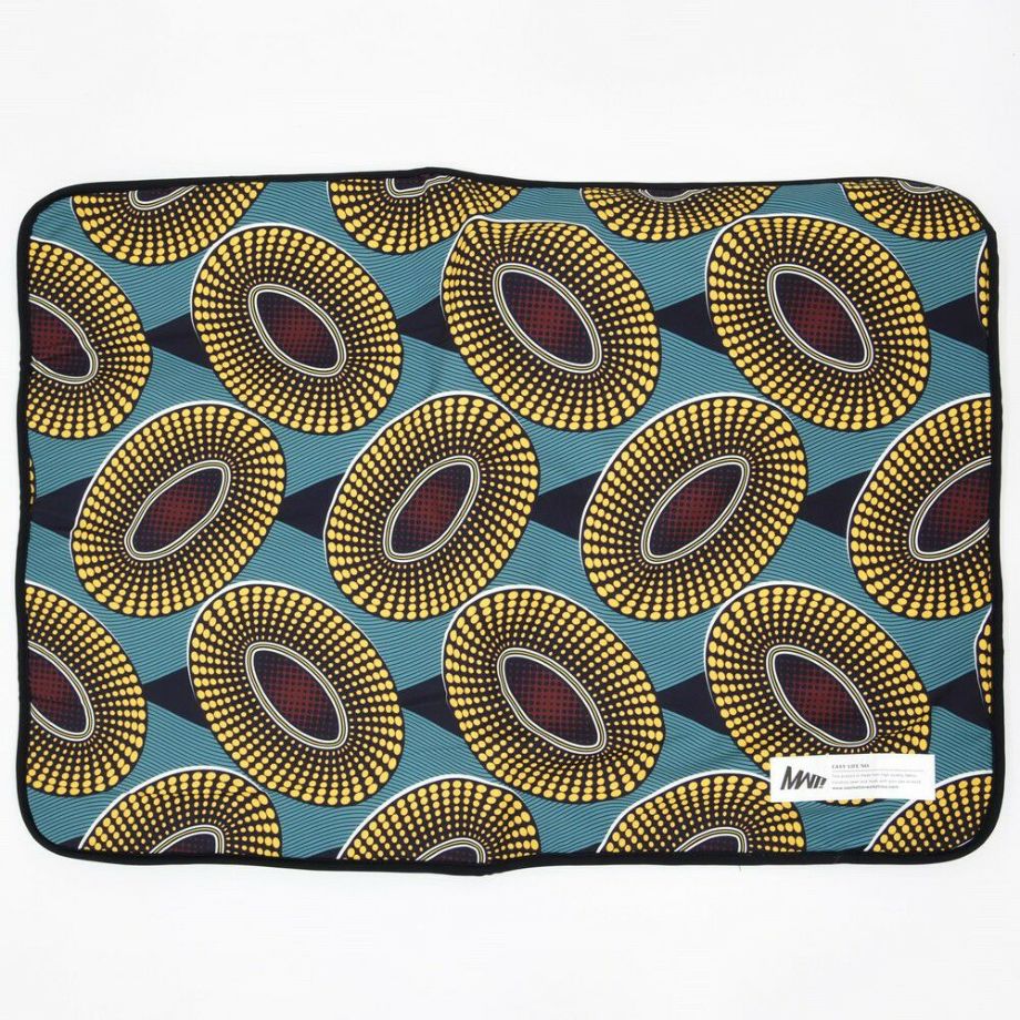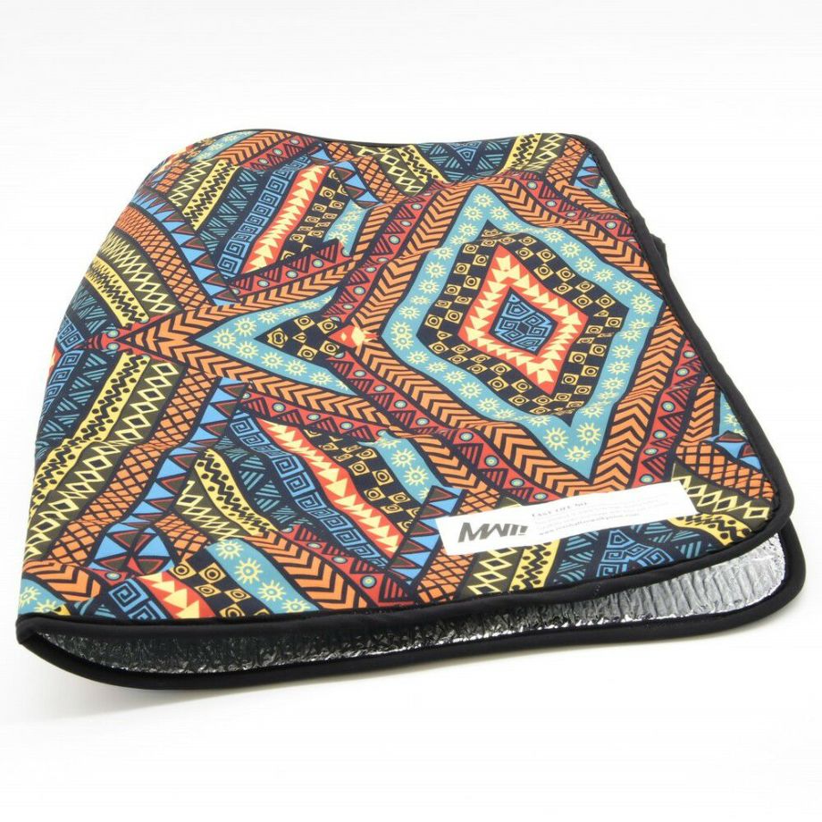 アルミ蒸着生地を貼った肉厚なマナーマットです。