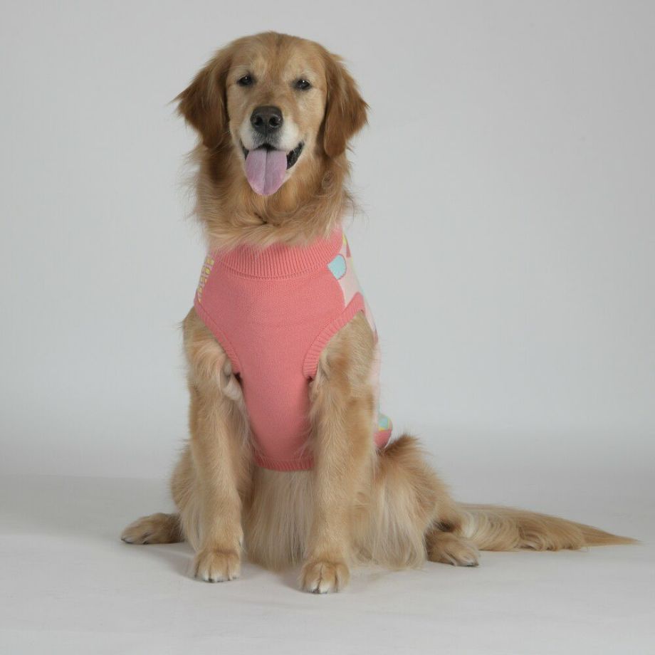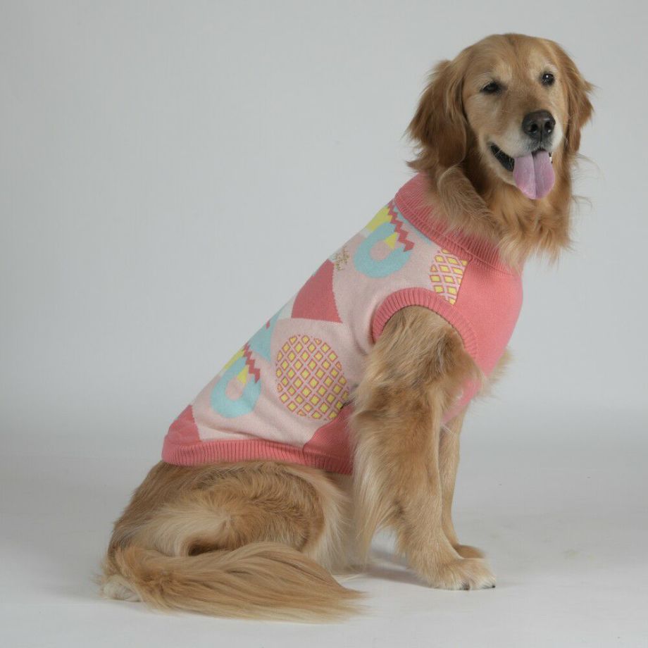 派手だけど我が家の愛犬にはなぜか似合う毎日が楽しくなるニットです。