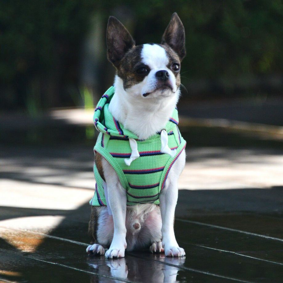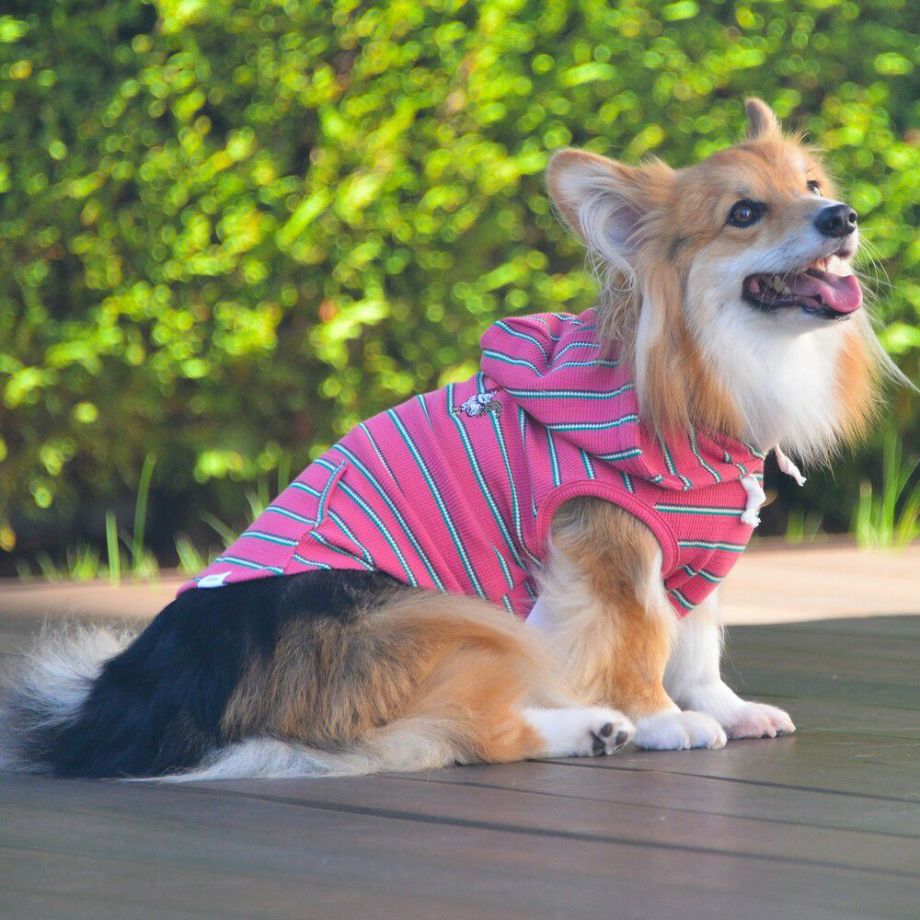 派手だけどどこか懐かしい色味が特徴のボーダーパーカー。