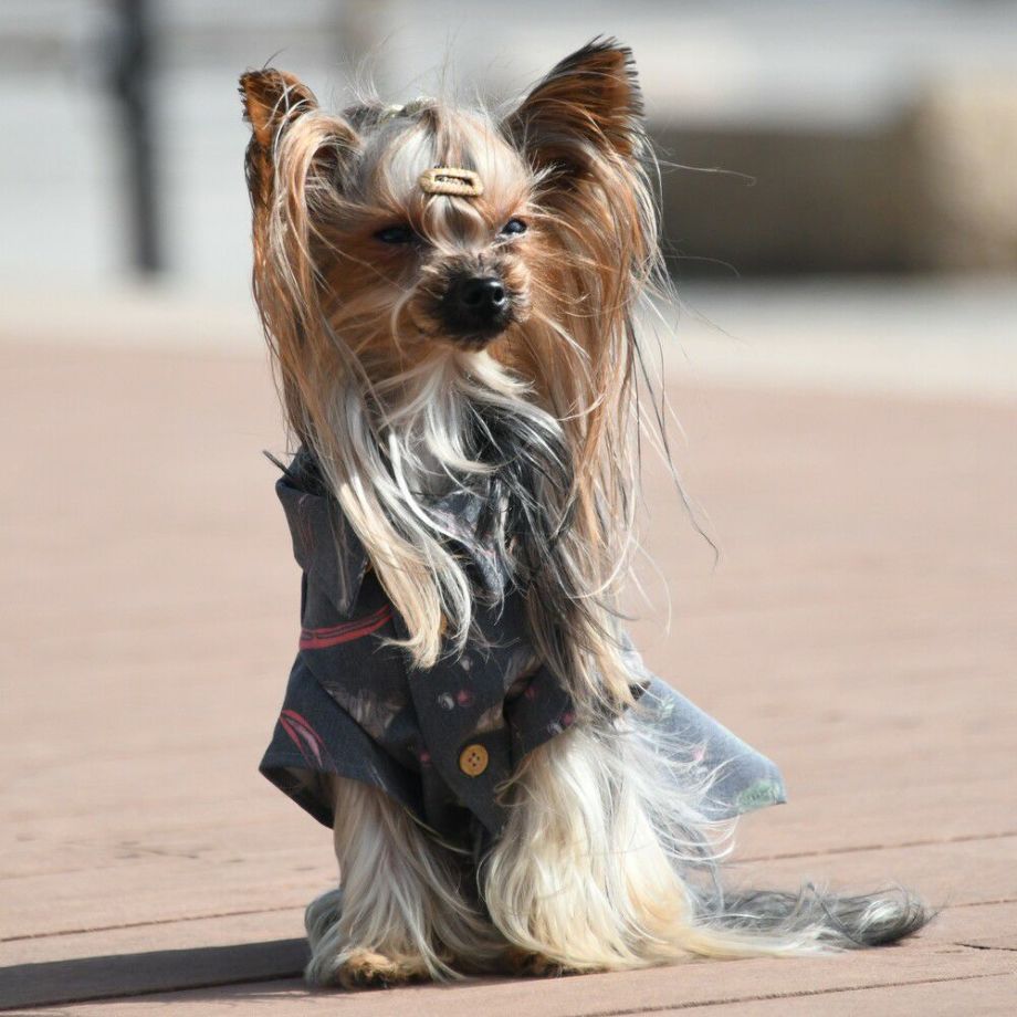アロハシャツとはまた違ったシックな印象でどんな犬種にもよく似合います。