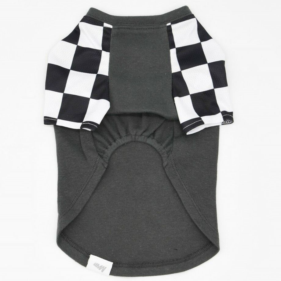 ラグランの袖はチェッカー柄のメッシュ生地で着心地抜群。