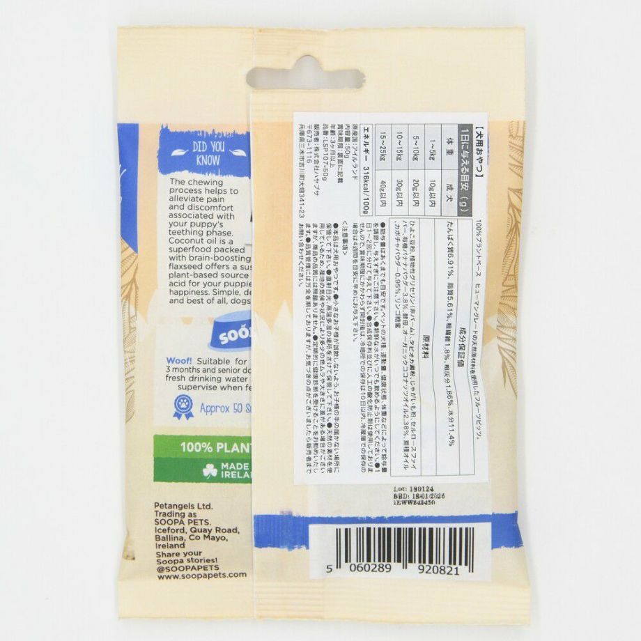 100%天然のバナナとカボチャで作られたこのヘルシーなバイツは、子犬の歯の見た目と匂いを清潔に保つのに最適です。