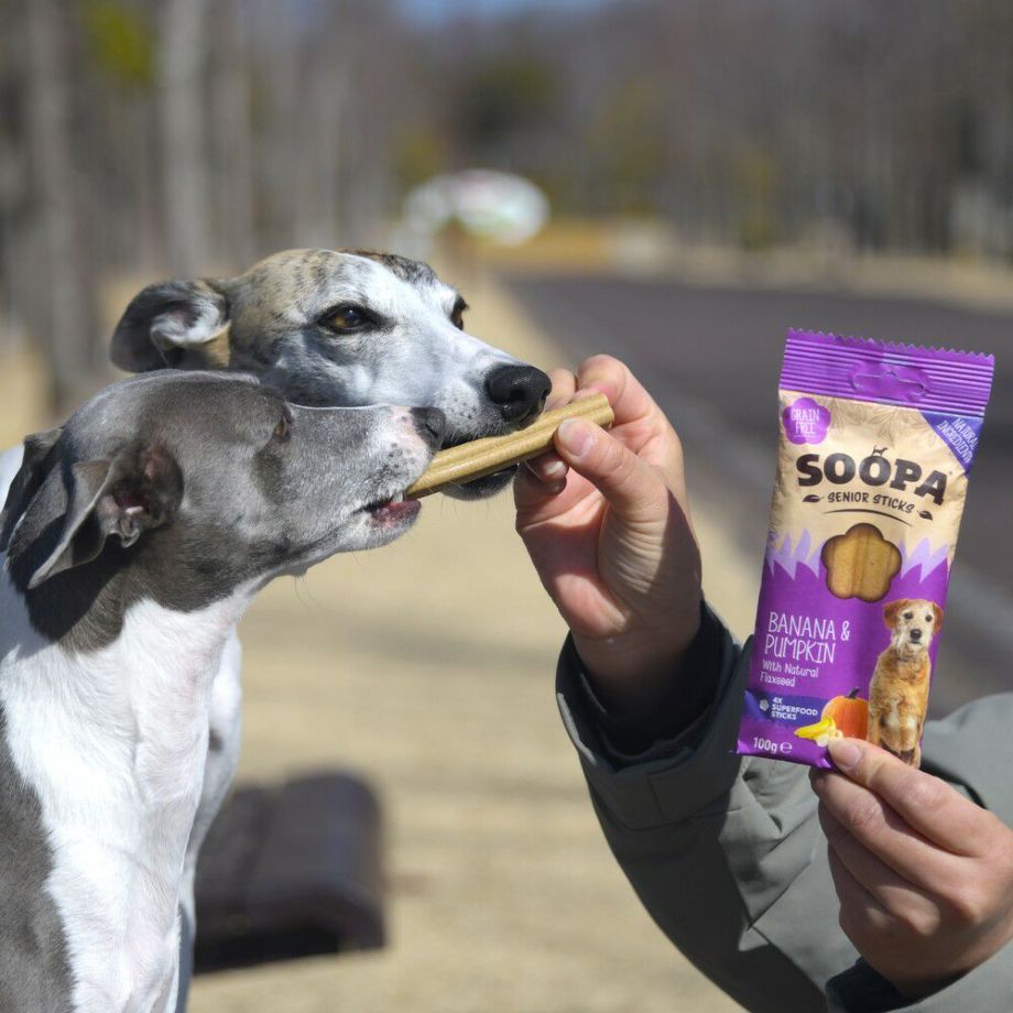 おいしくて健康にも良い犬用おやつ SOOPA バナナ パンプキン アンド フラックスシード スティック フォー シニア ドッグス
