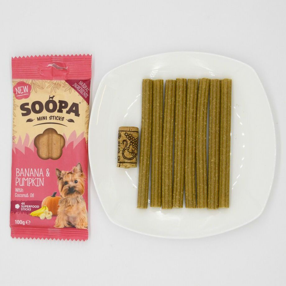 おいしくて健康にも良い犬用おやつ SOOPA バナナ アンド パンプキン スティック フォー ミニ ドッグス