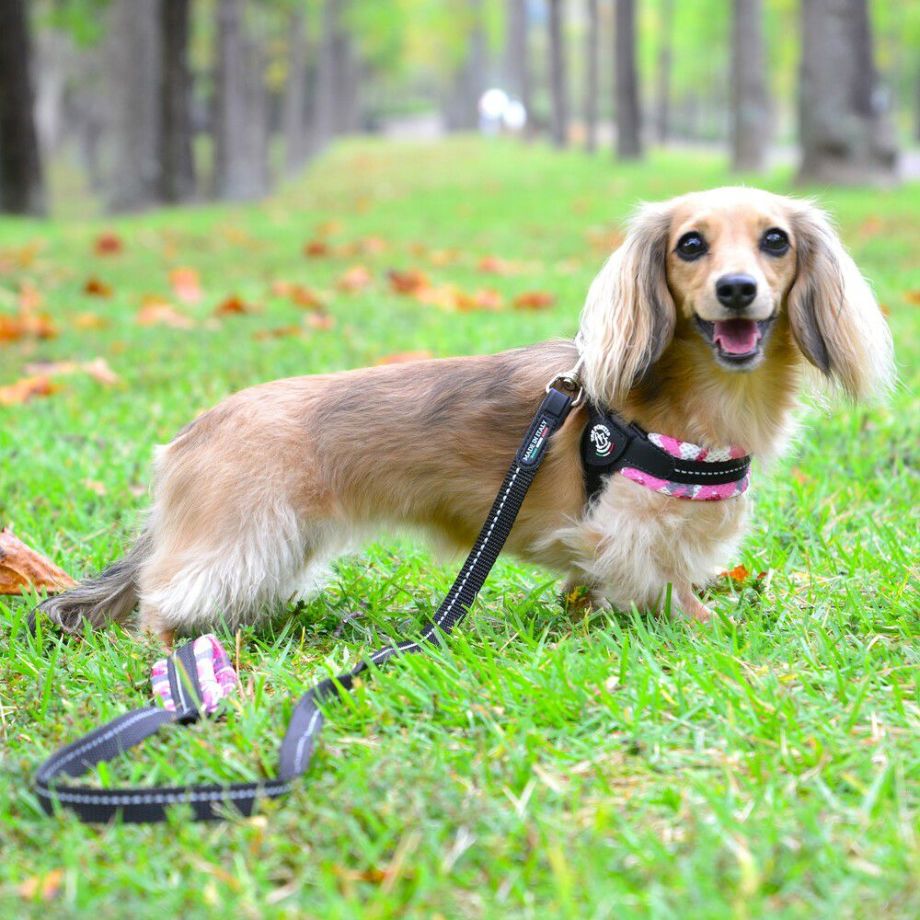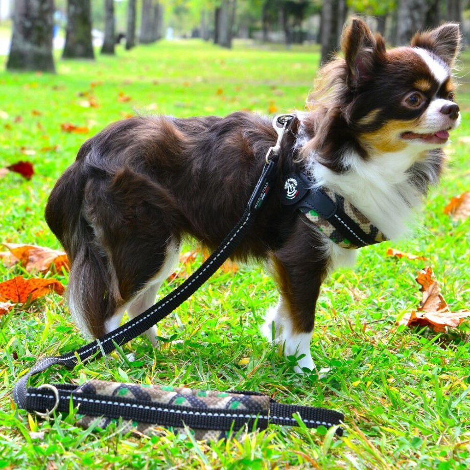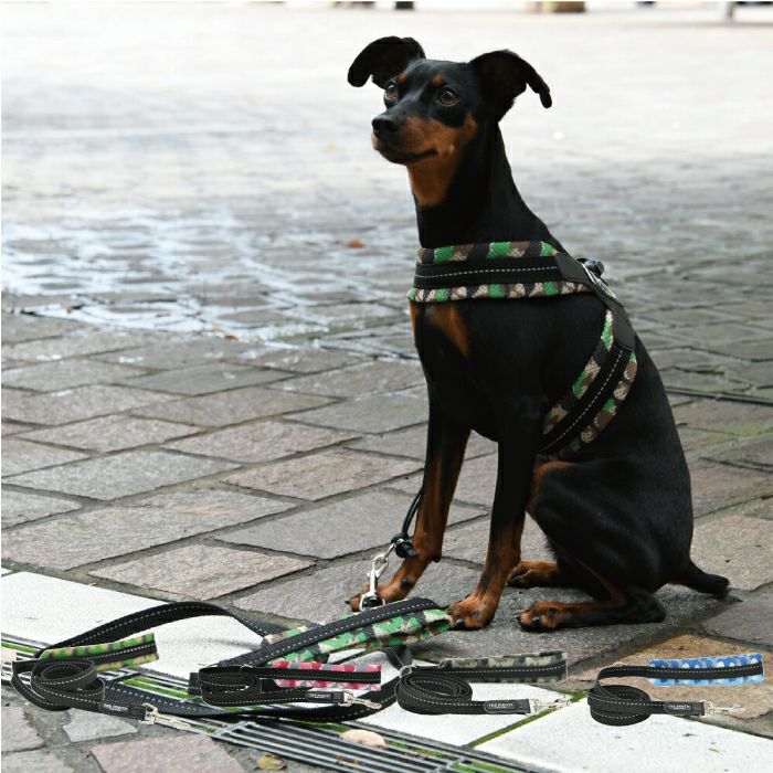 ハンドルがおしゃれな迷彩柄メッシュ生地で柔らかく、優しい握り心地の小型犬、中型犬用のリード。ハーネスと合わせるのもおすすめです。