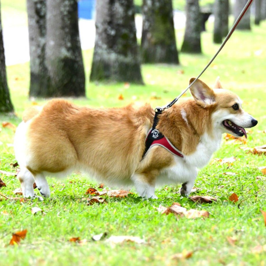 犬種の体型に合わせて胴回り部分の調節が可能なハーネスです。