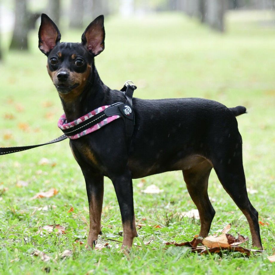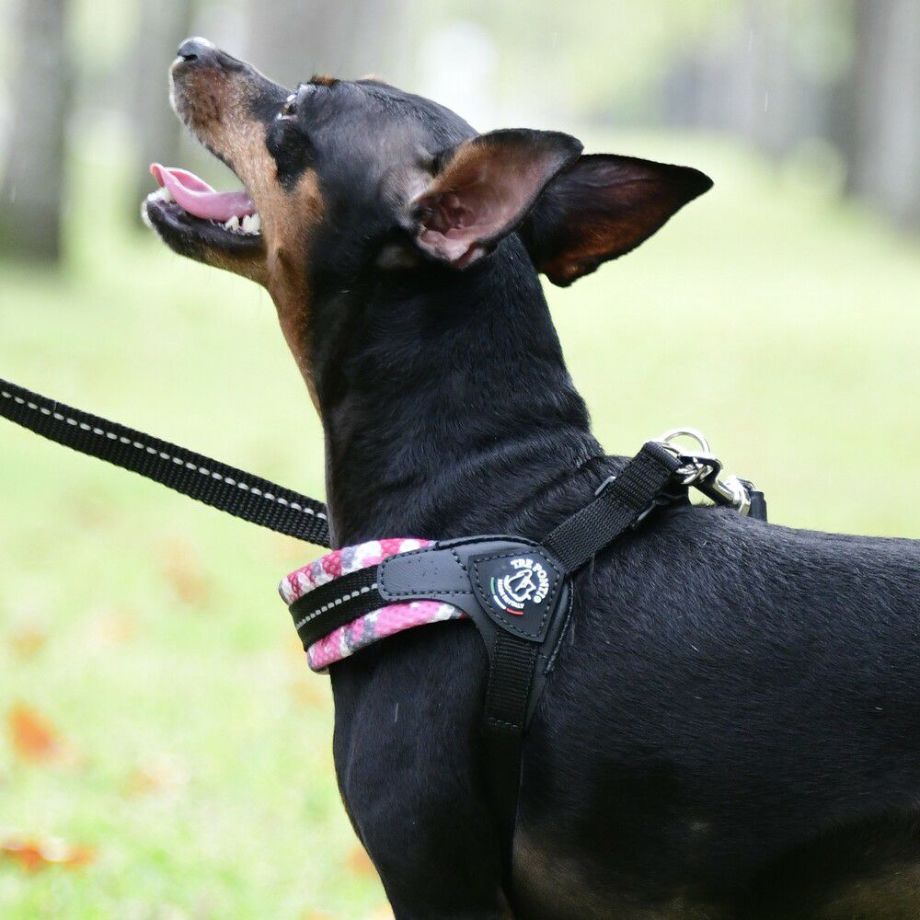 犬種の体型に合わせて胴回り部分の調節が可能なハーネスです。