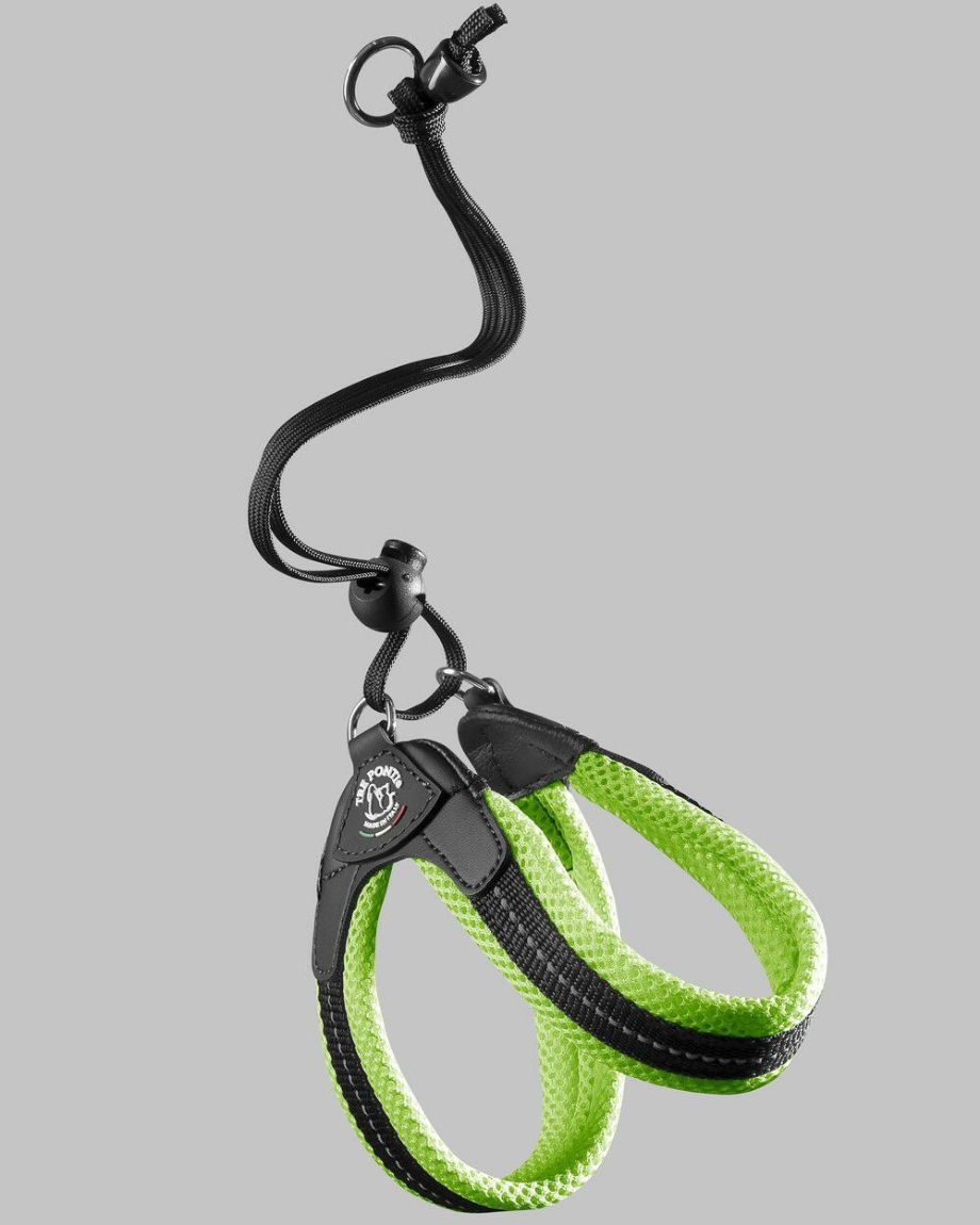 柔らかいメッシュ生地を使用した、負担になりにくい設計のコードロックタイプのハーネス。ビビットなカラーが目を引きます。