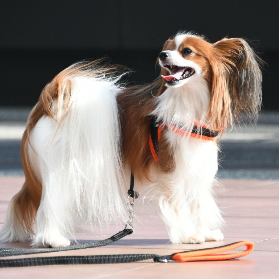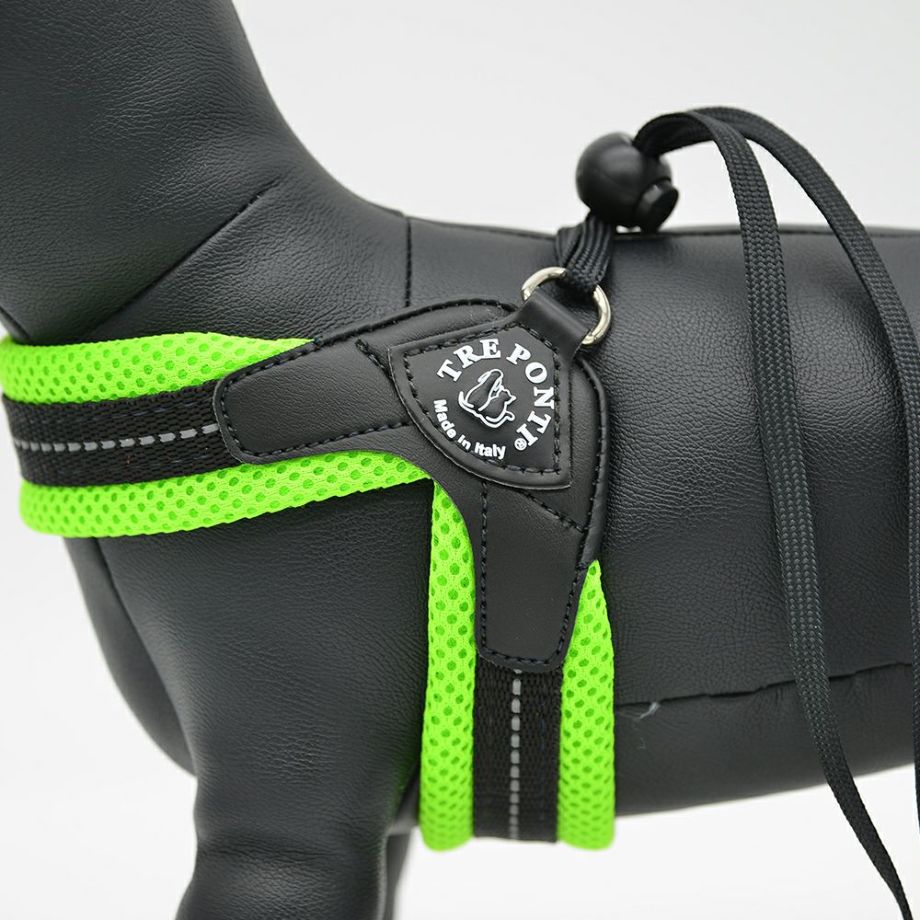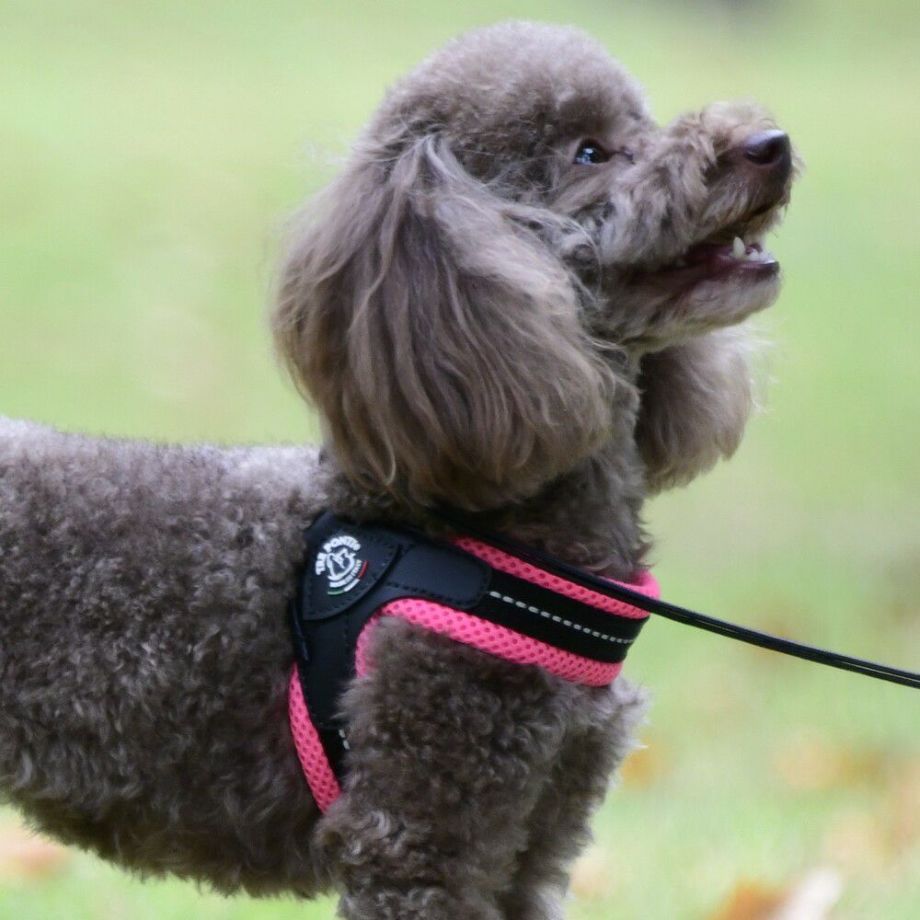 調節可能なストラップでリラックスした状態を保ちますが、犬が引っ張ったり飼い主がリードを引くとハーネスが締まり、体に密着します。