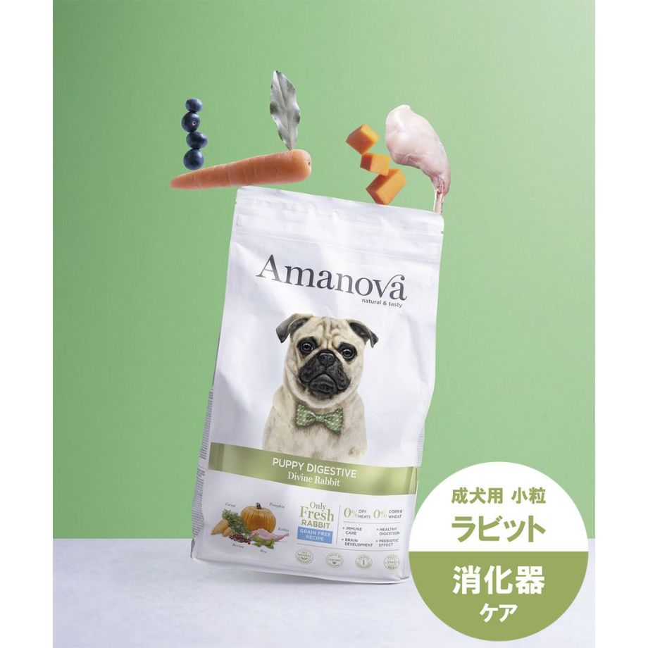ウサギ肉のみを使用し、皮膚や消化に配慮して設計された、子犬向けのグレインフリー小粒フードです。