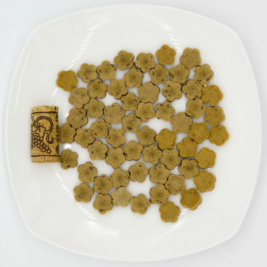 じゃがいも粉、植物性グリセリン(非パーム)、タピオカ澱粉、ひよこ豆粉、乾燥クランベリー4%、セルロースファイバー、酵母製品、オーガニックココナッツオイル2.5%、サツマイモパウダー2%、亜麻仁2%、リンゴ糖蜜