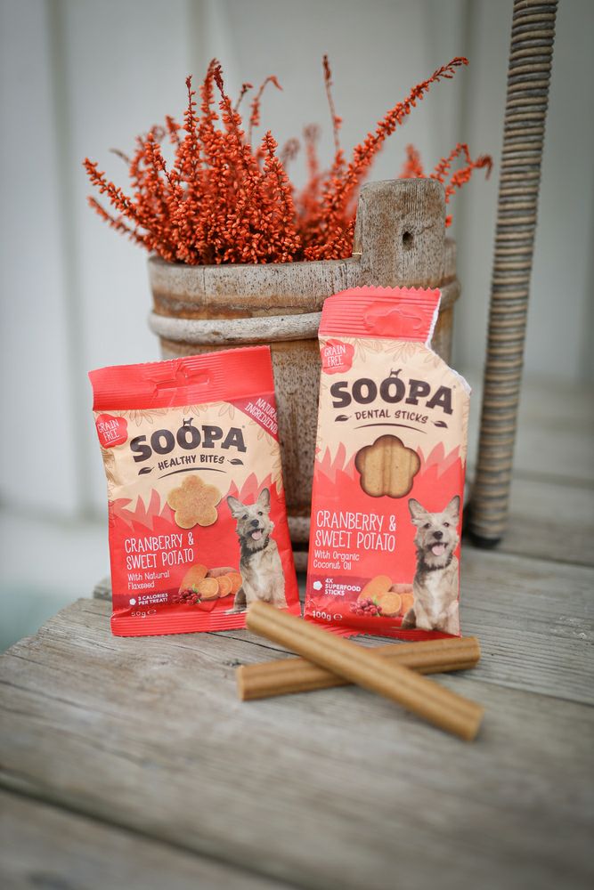 ひとくちサイズでトレーニングに最適! SOOPA クランベリー アンド スウィートポテト バイツ