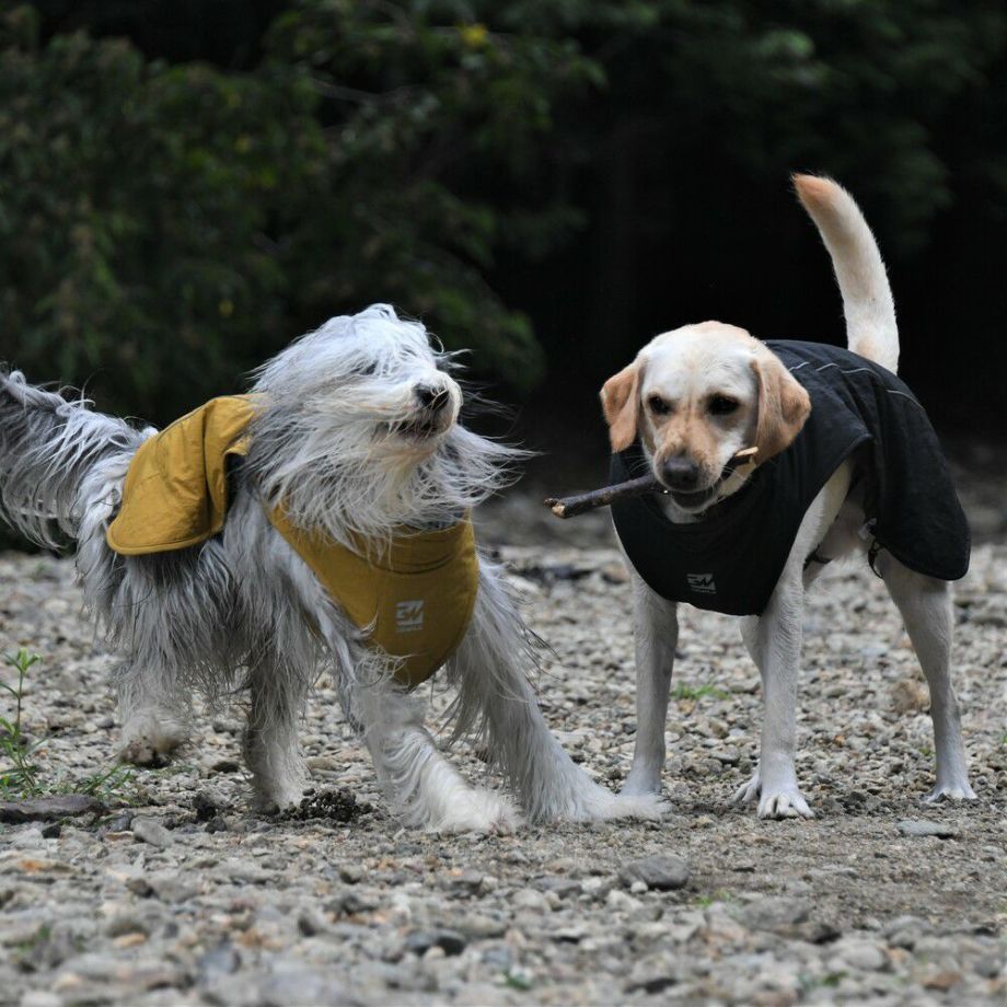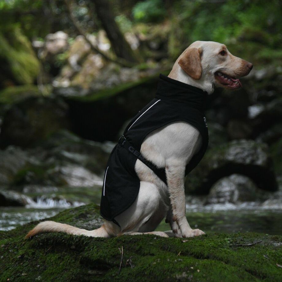 ウエストバックルと後ろ足のゴムホルダーで着脱しやすく、自由な動きを実現しています。
