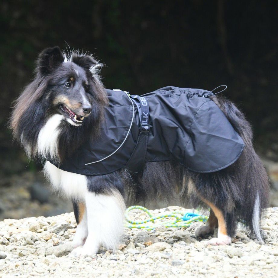 急な雨の中でも撥水、撥油、防汚加工により水や泥などの汚れから愛犬を守り、お手入れも簡単です。