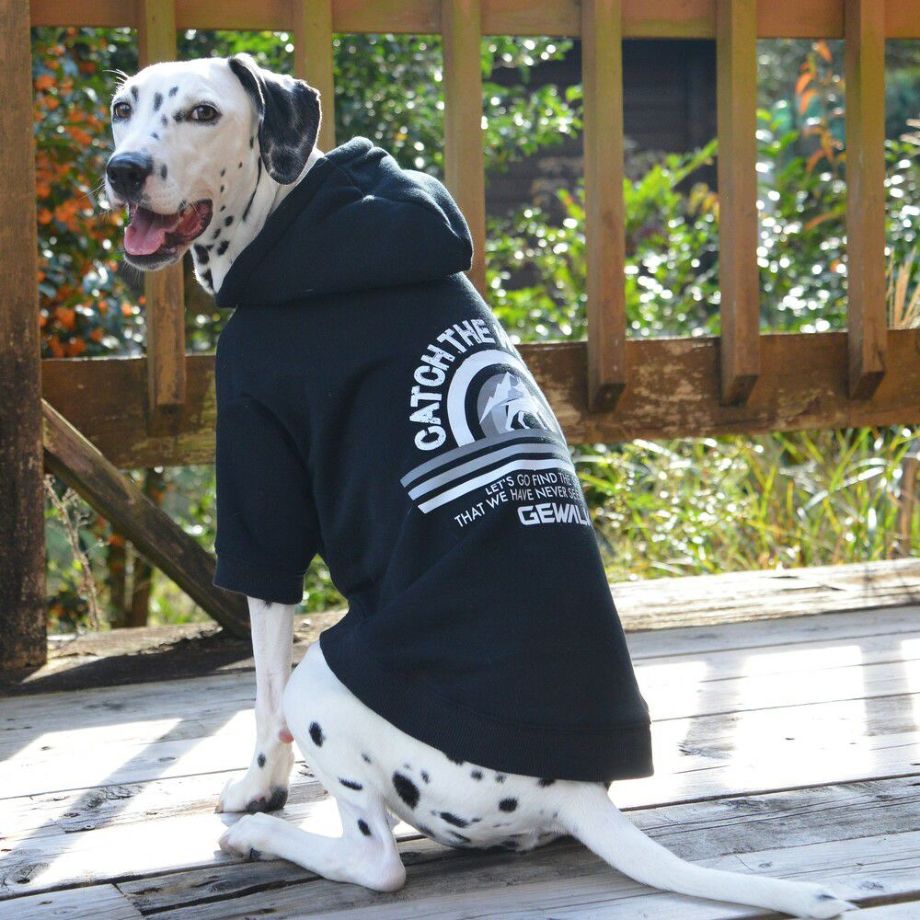 オリジナルグラフィックをレイアウトしたプルオーバーフーディー。