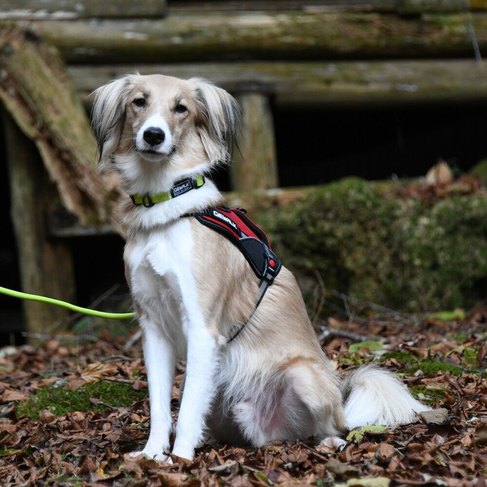 付属のカラーは、体重や季節の変化等によってサイズ調整が幅広く可能です。
