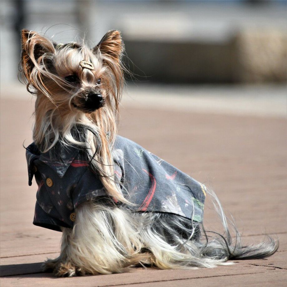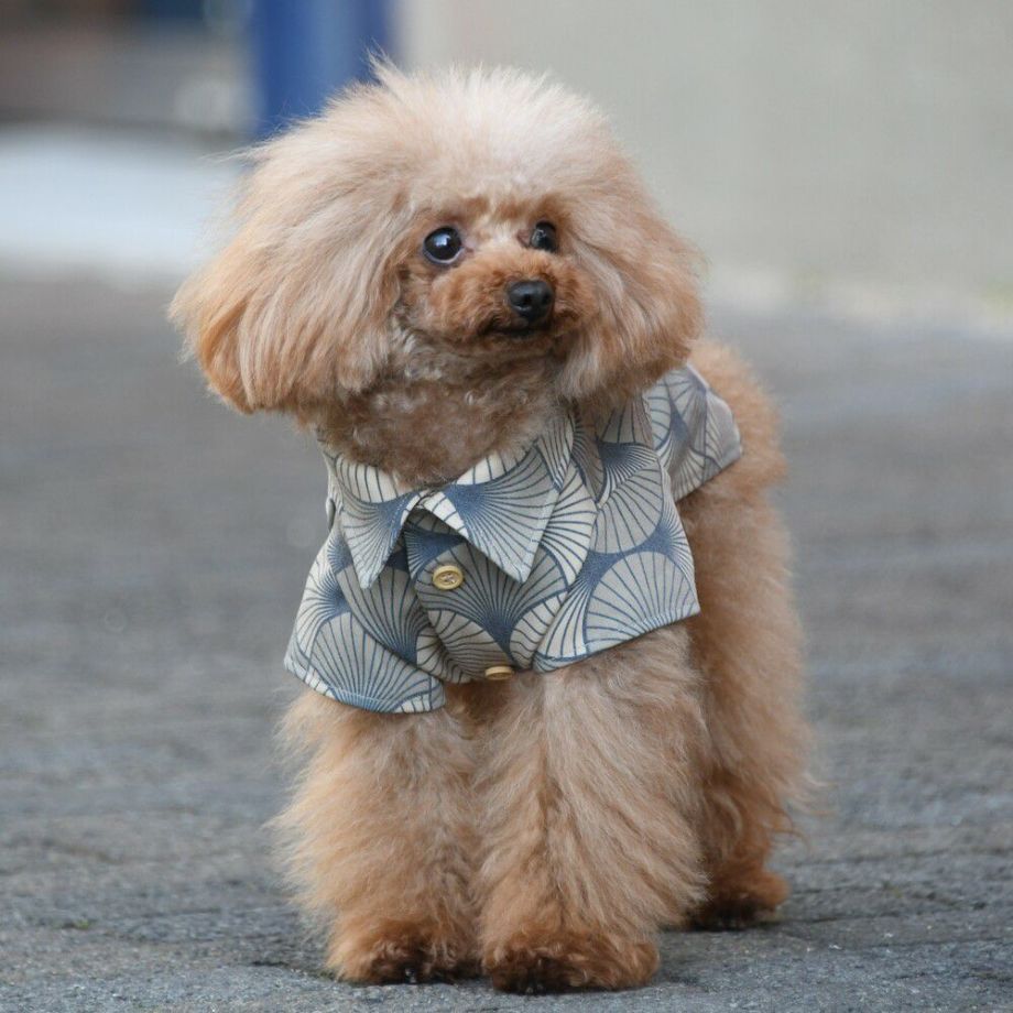 アロハシャツとはまた違ったシックな印象でどんな犬種にもよく似合います。