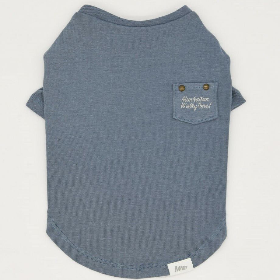 夏の散歩にもってこいのサーフライクなデニムTシャツ。胸元のワンポイントポケットが雰囲気があります。愛犬と海辺を散歩するときにもってこいのTシャツです。