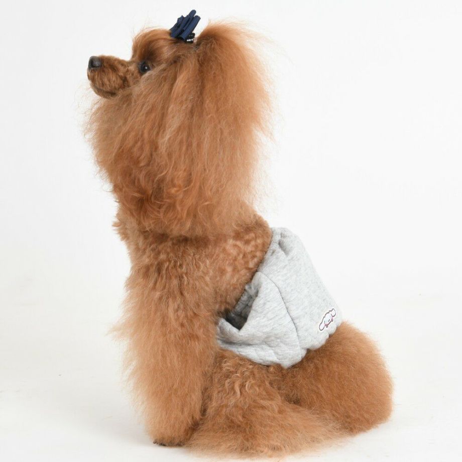 ワンちゃんの胴回りに合わせてゴムの調整ができるようにゴム取り換え口を作っています。