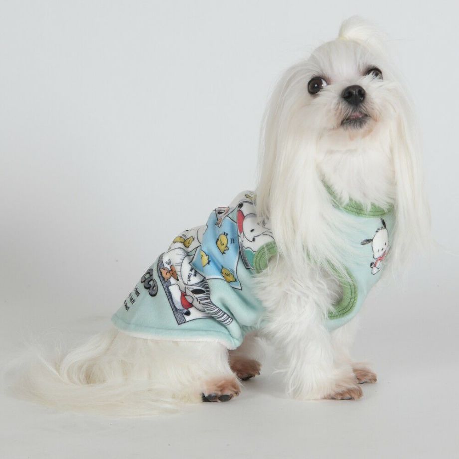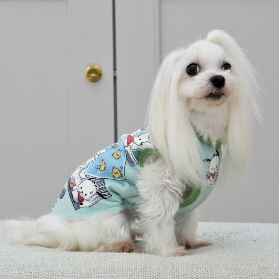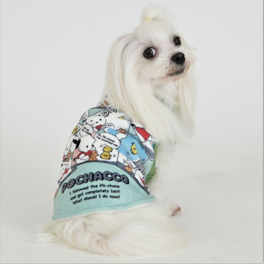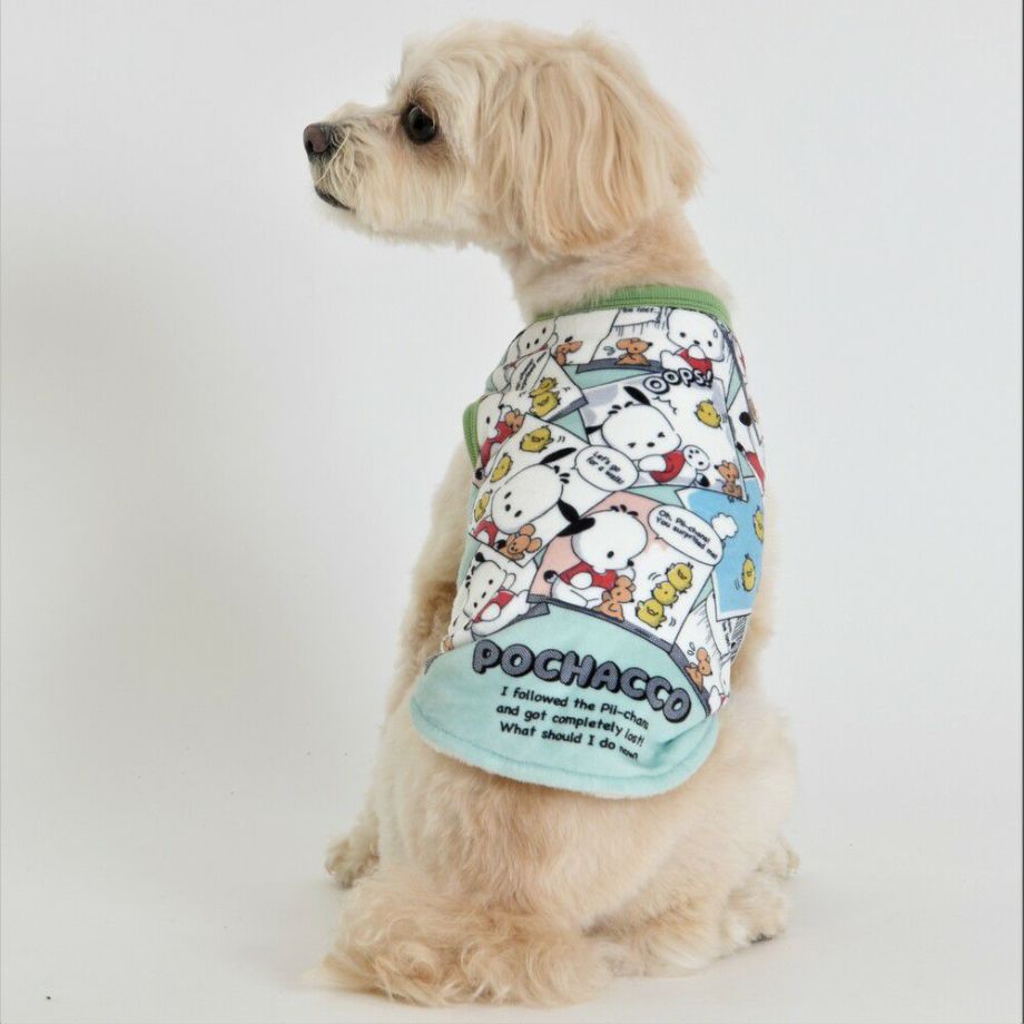 前身頃にはポチャッコとポチャッコのいちばんの親友のチョッピが楽しそうにお話してるように見えます。