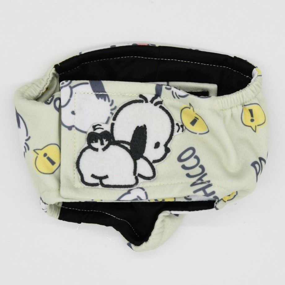 可愛いポチャッコの総柄の中に後ろ向きのポチャッコのワッペンが可愛く目を引きます。