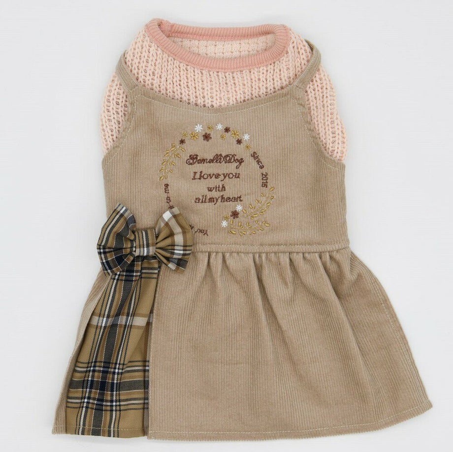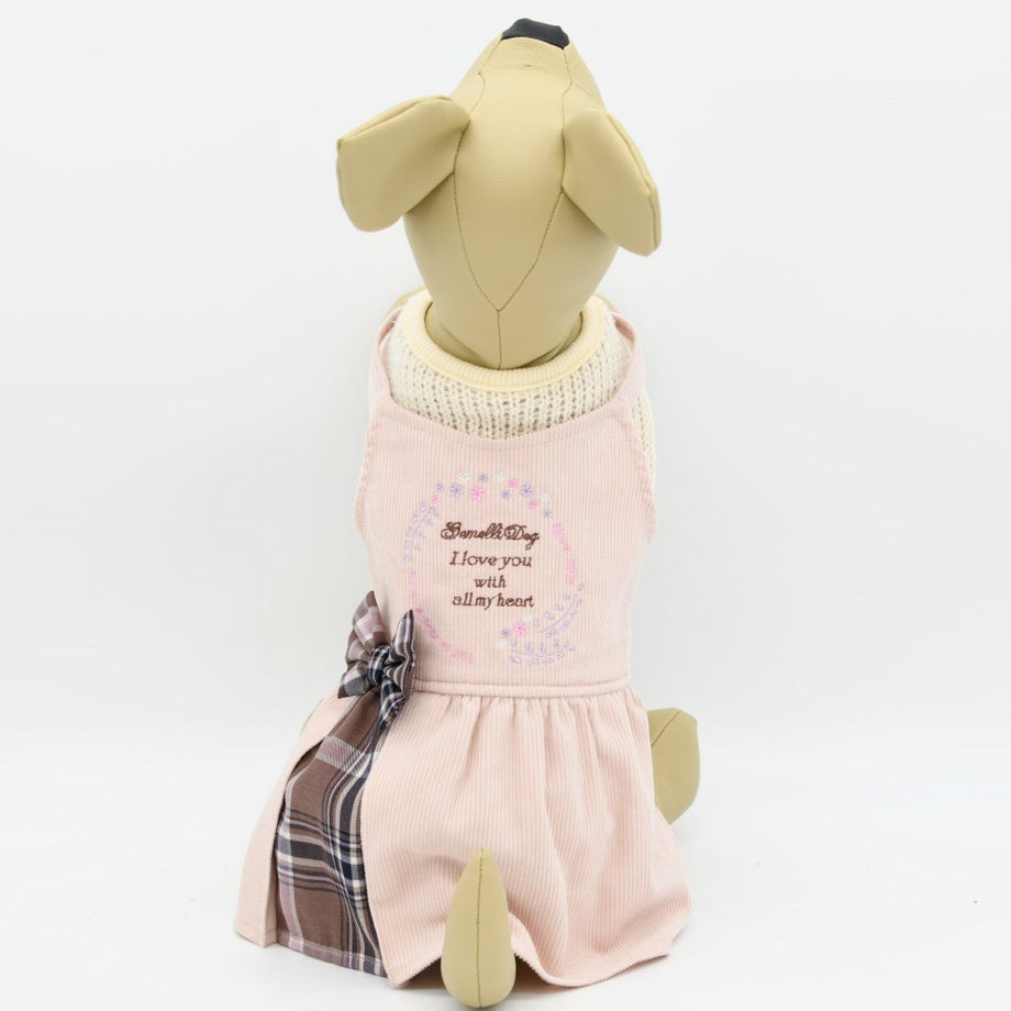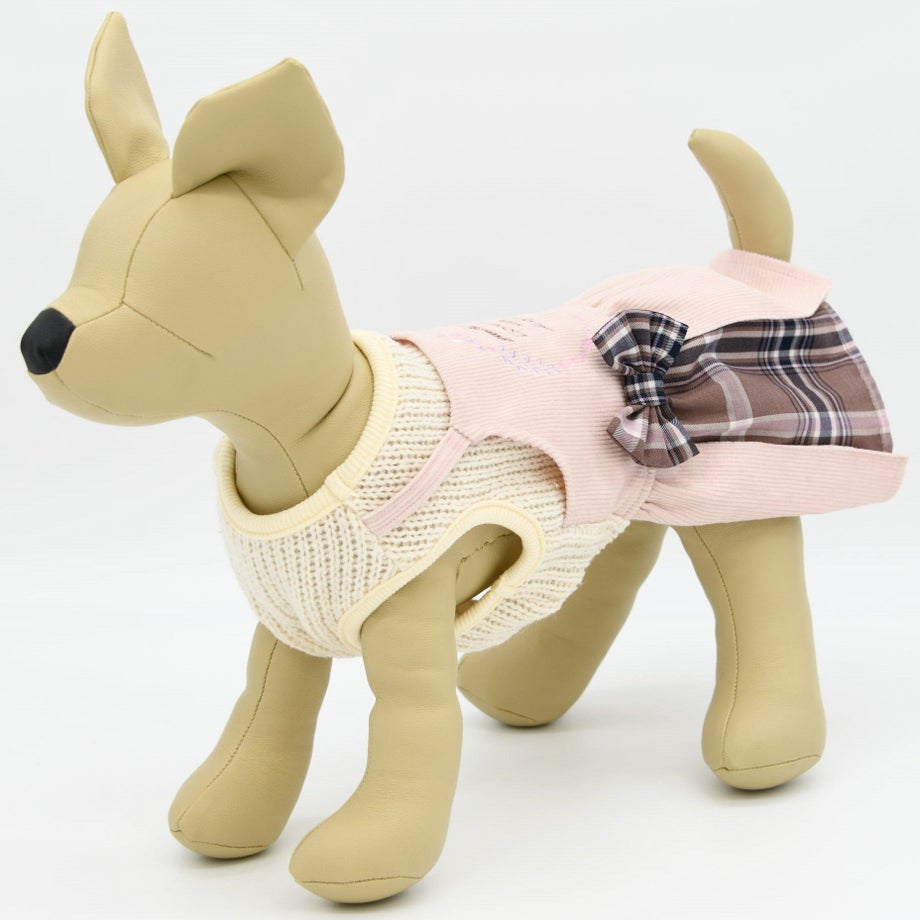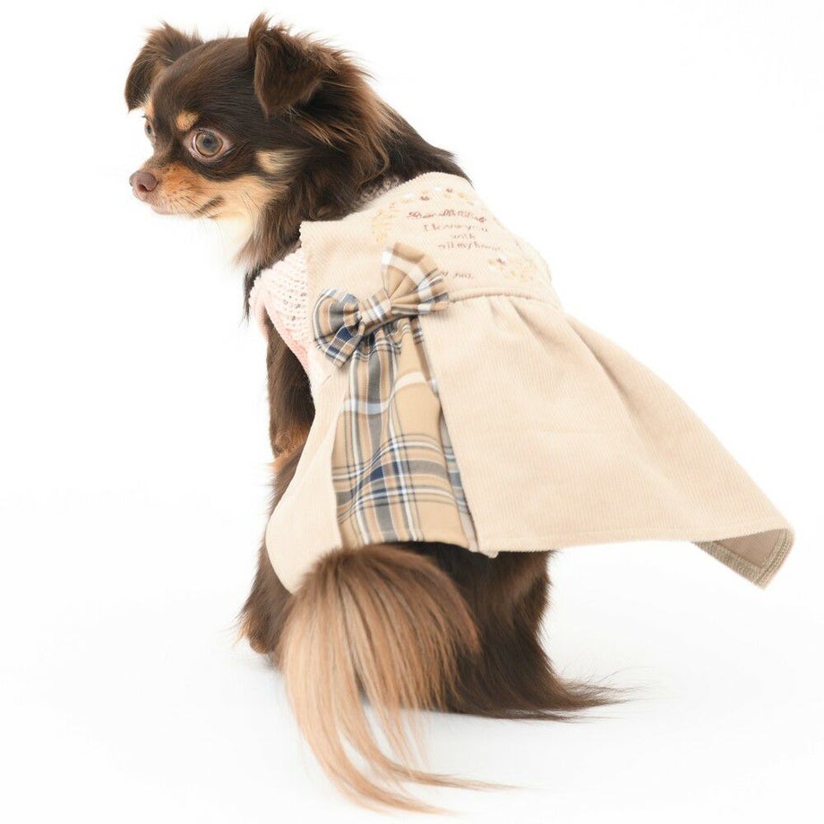 スカート部分にはコーデュロイに合わせて切替とリボンに日本製のチェック生地使用し上品さも感じられるアイテムです。