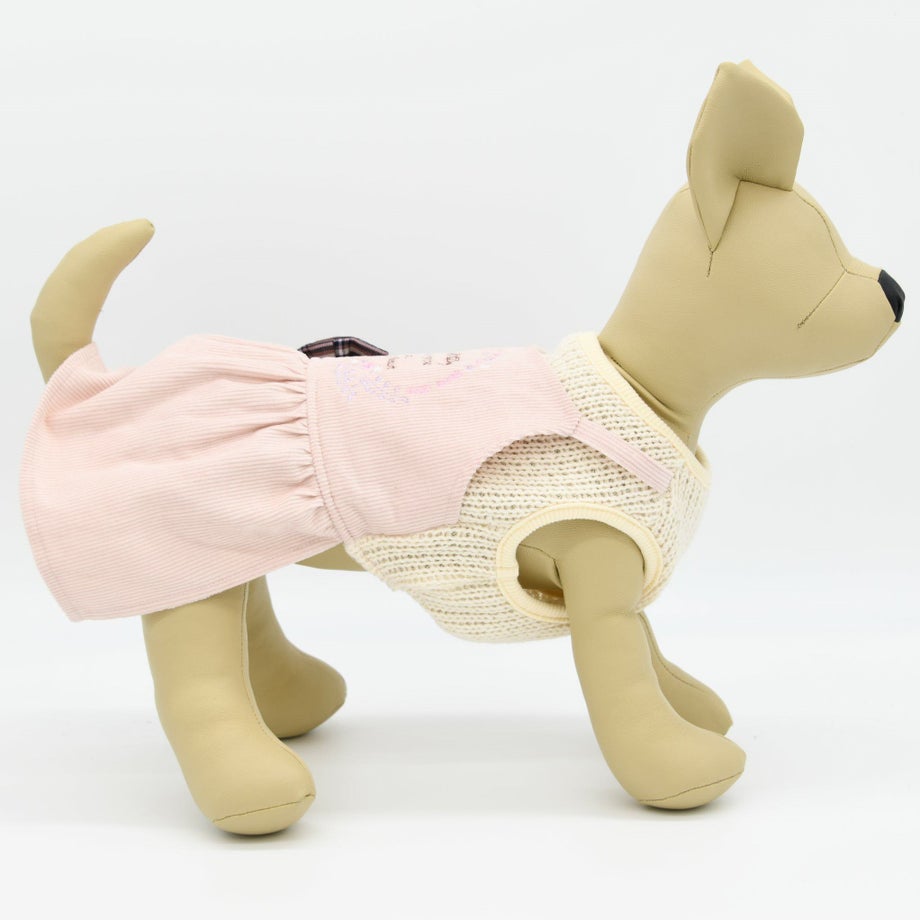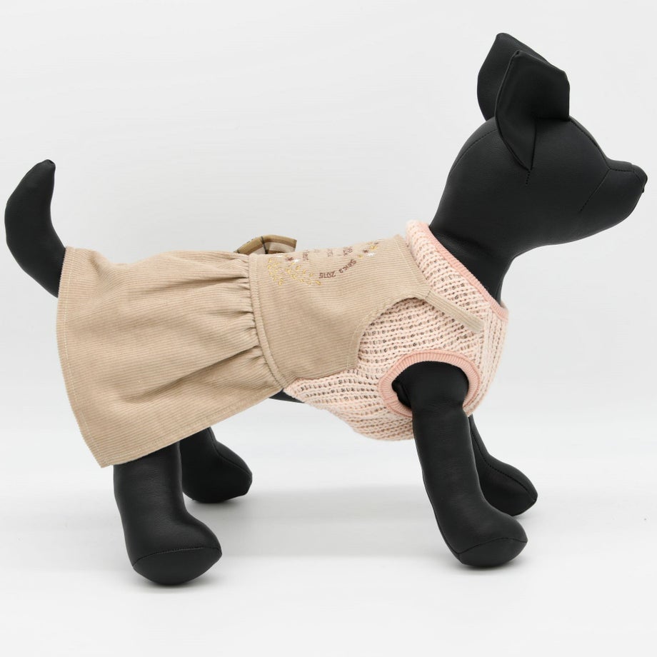 コーデュロイが特徴の重ね着風ワンピース コーデュロイハナシシュウワンピース