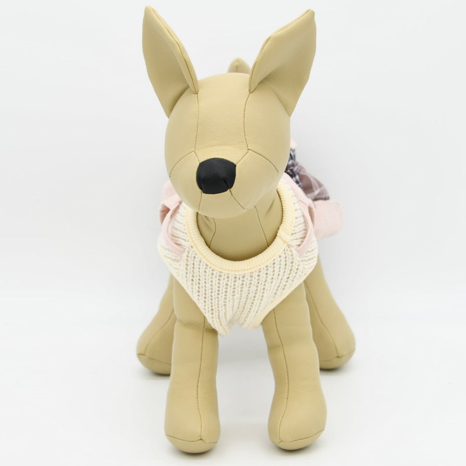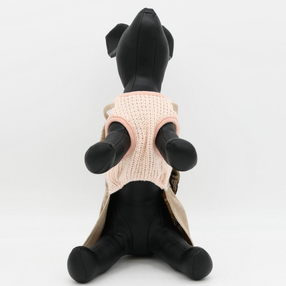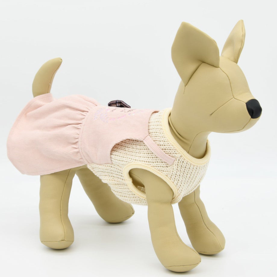 ニット生地にコーデュロイ生地のキャミソールを合わせたデザインとなります。