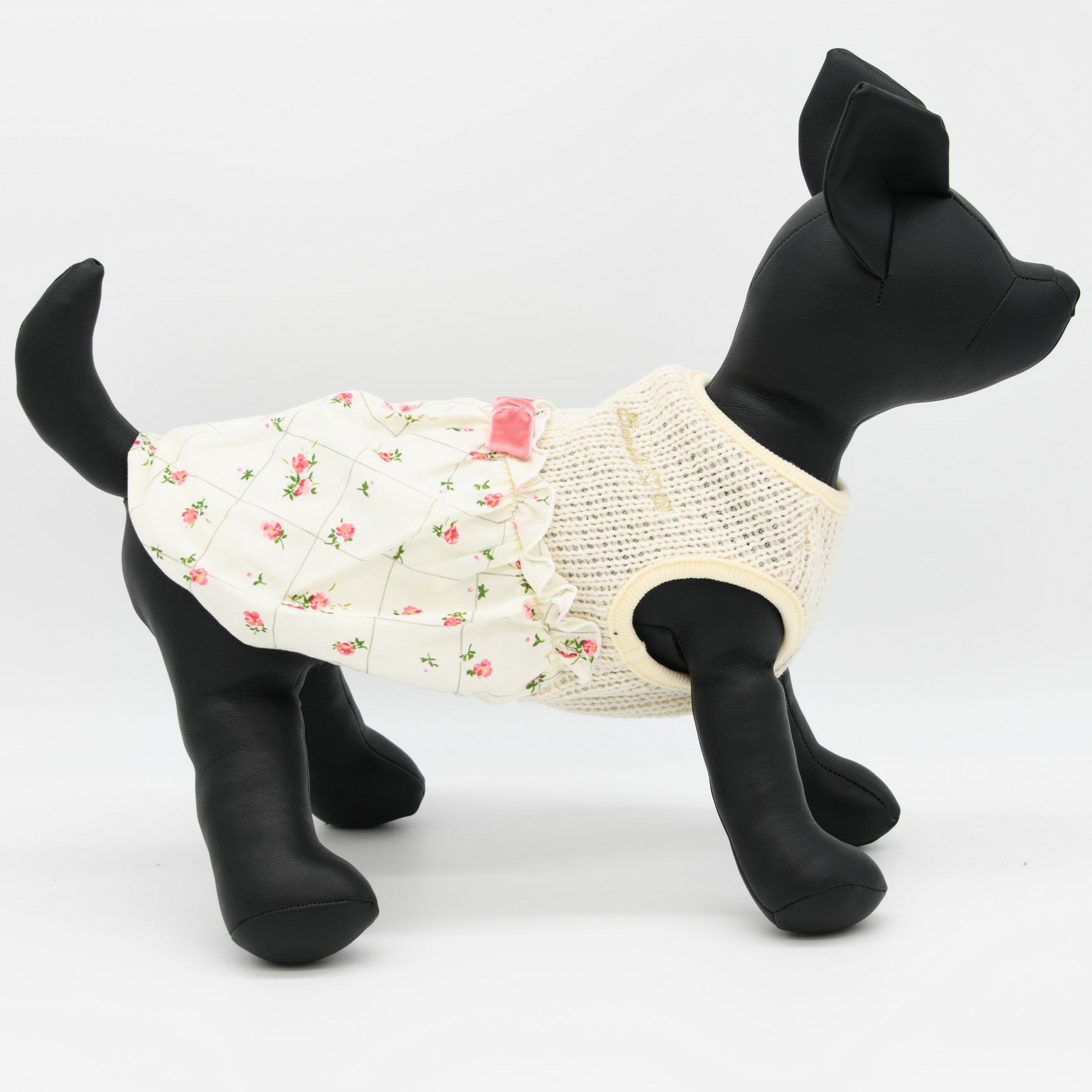 ニット生地にダイヤ×花柄の日本製生地を使用した裾バルーンチュニック。