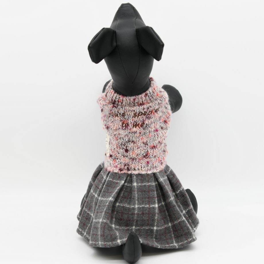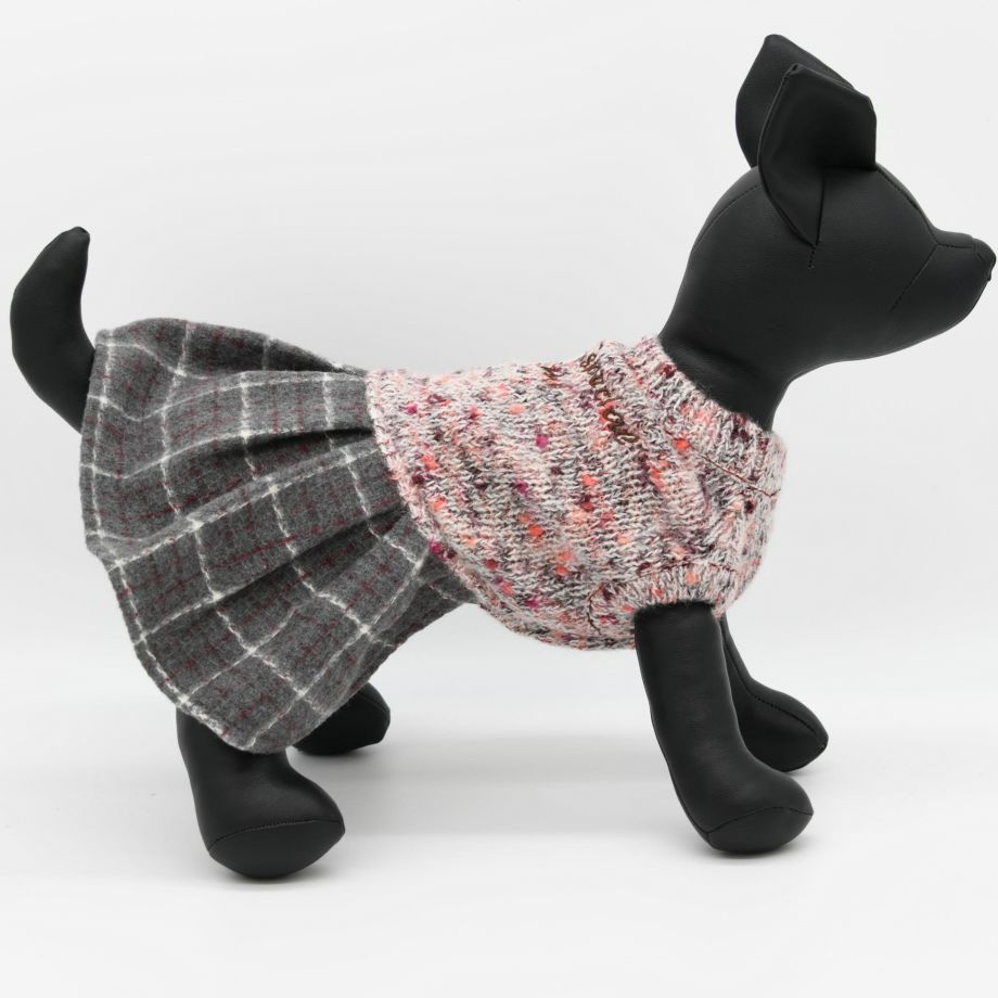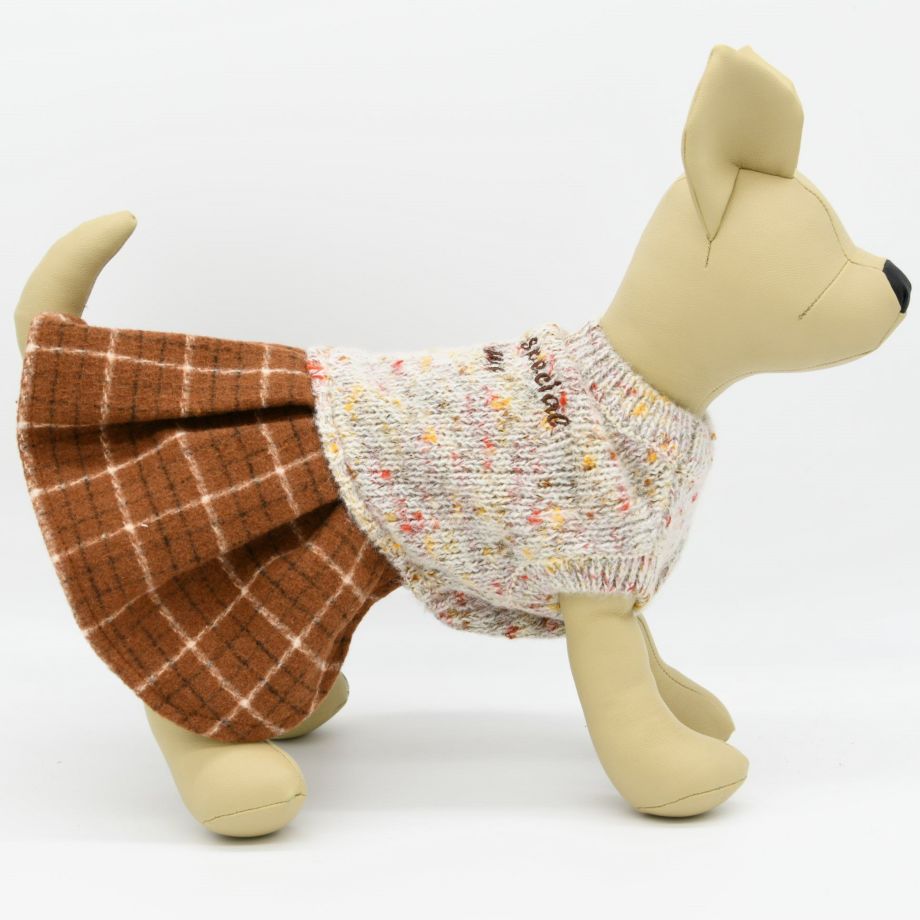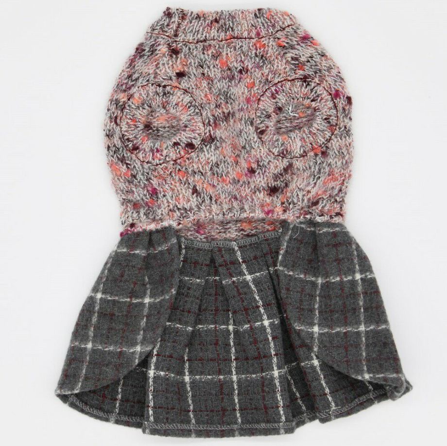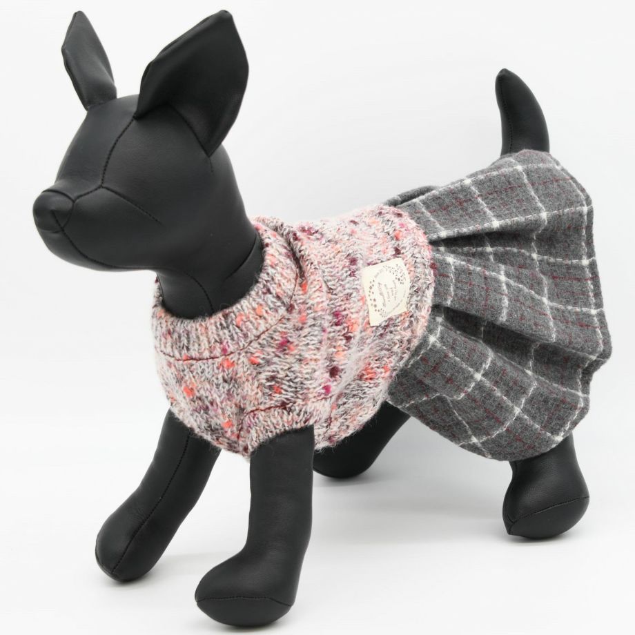 杢柄のニットとチェックのスカートがおしゃれなニットワンピース。