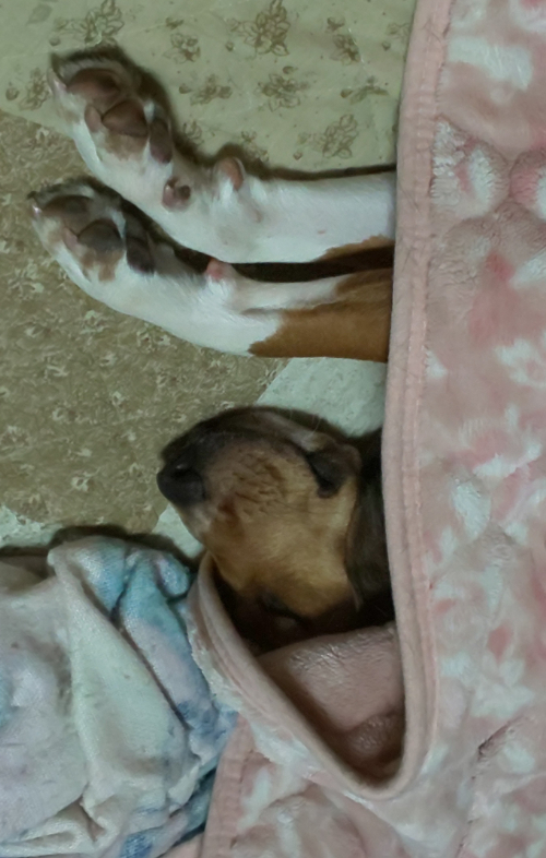 まだまだ夢心地、たまにお友達と遊んでいるのか足をバタバタさせて寝言まで
