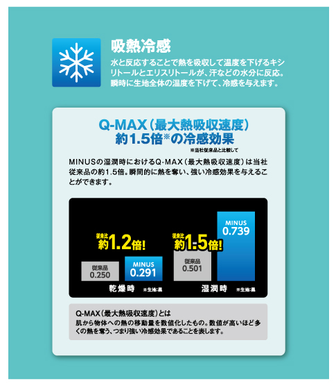 MINUSの湿潤時におけるQ-MAX(最大熱吸収速度)は当社従来品の約1.5倍。