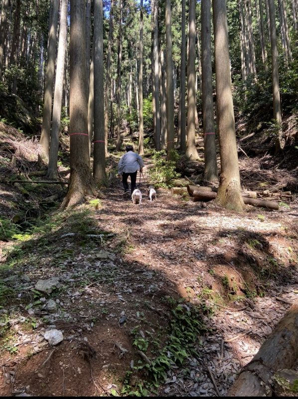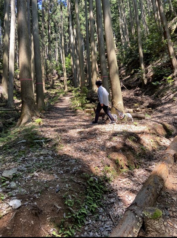 わんこたちは山歩きをとても爽快に楽しんでいます。