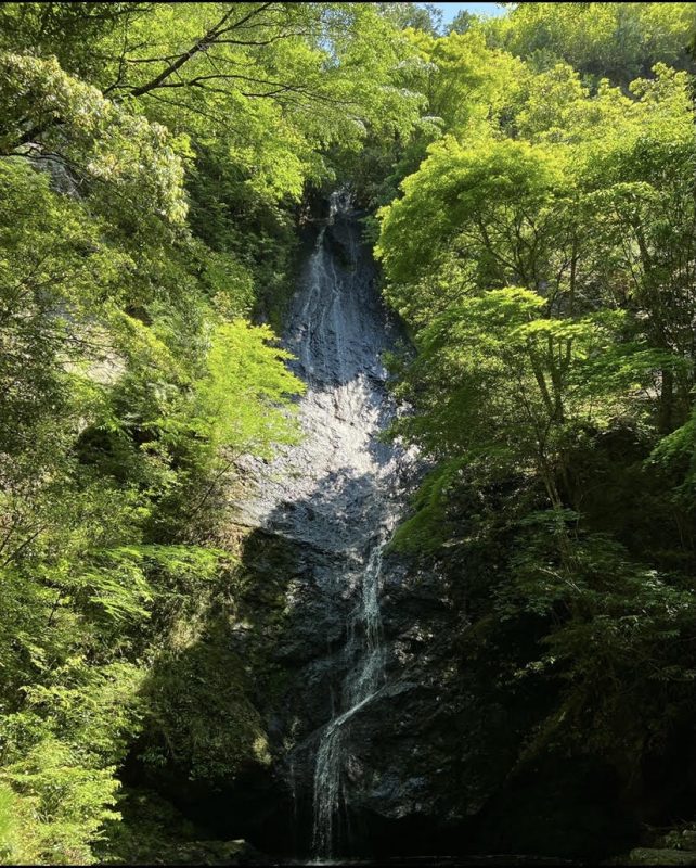 駐車場が近くにあり車を停めてから数分歩いたら滝に着きました。もちろを山中なので木が生い茂り日陰ですし、道も日陰の中の土なのでひんやりしてました。