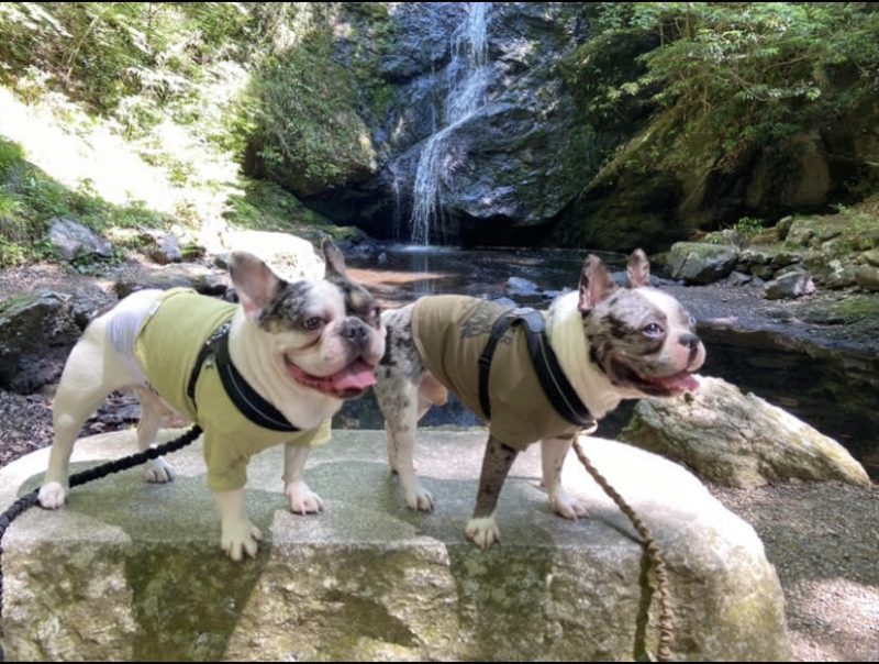 今回着ている服はGEWALKのTシャツと、トレポンティのハーネスです!汚したり濡れても洗いやすく乾かしやすいところもお気に入りの理由です。