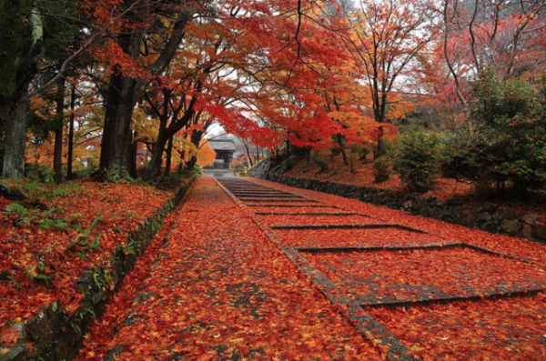 紅葉が地面に落ち、紅葉の絨毯になり、期間限定でライトアップなどされています。