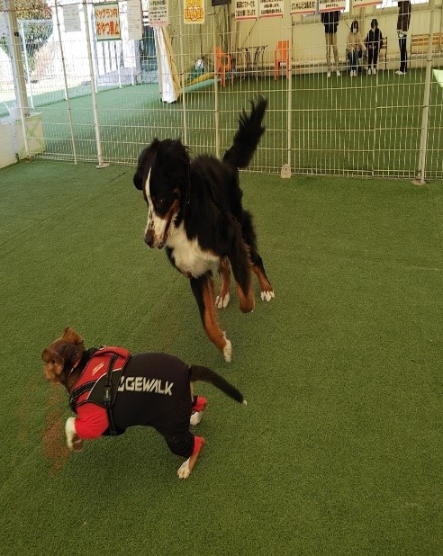 若い真くんは、3時間ずっとドッグランを楽しんでいます。