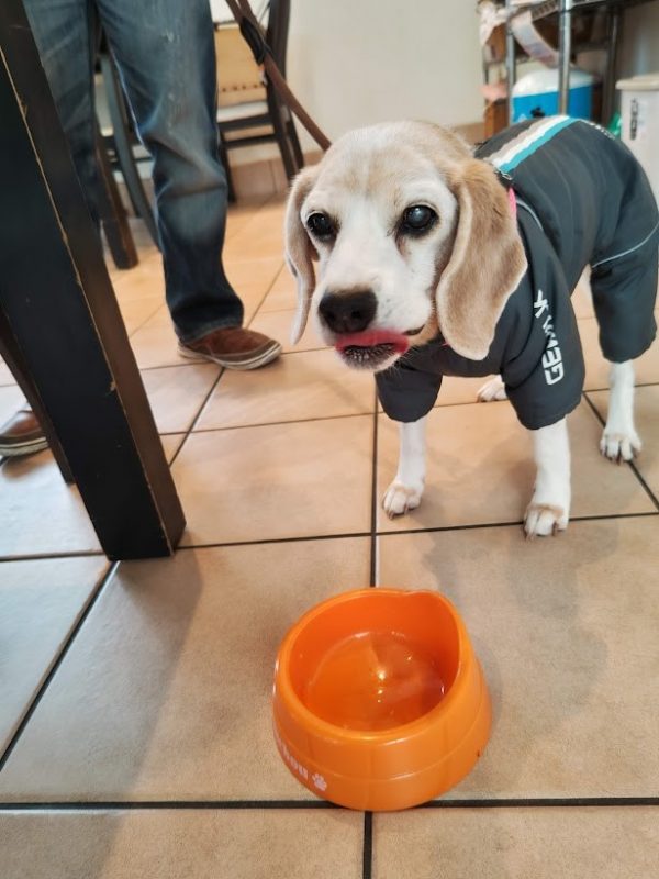 カフェやショップが隣接しているのでシニア犬のベリーは、
