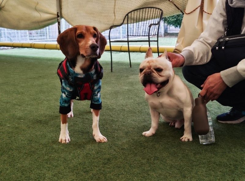 途中ショップやカフェで休み休みドッグランを楽しみ、