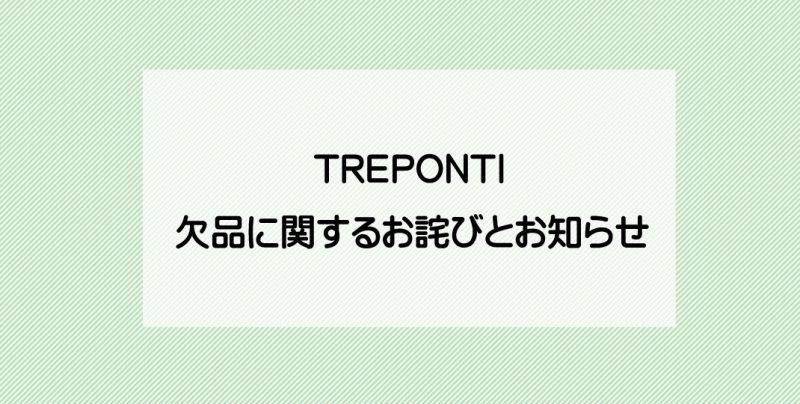 この度は、TREPONTI商品について、多くの品番で欠品が発生し、ご迷惑をおかけし大変申し訳ございません。