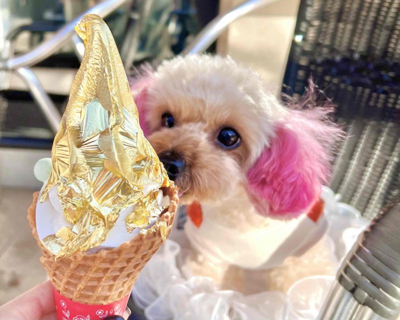 贅沢に金箔1枚を使ったソフトクリームにおいりがトッピング。